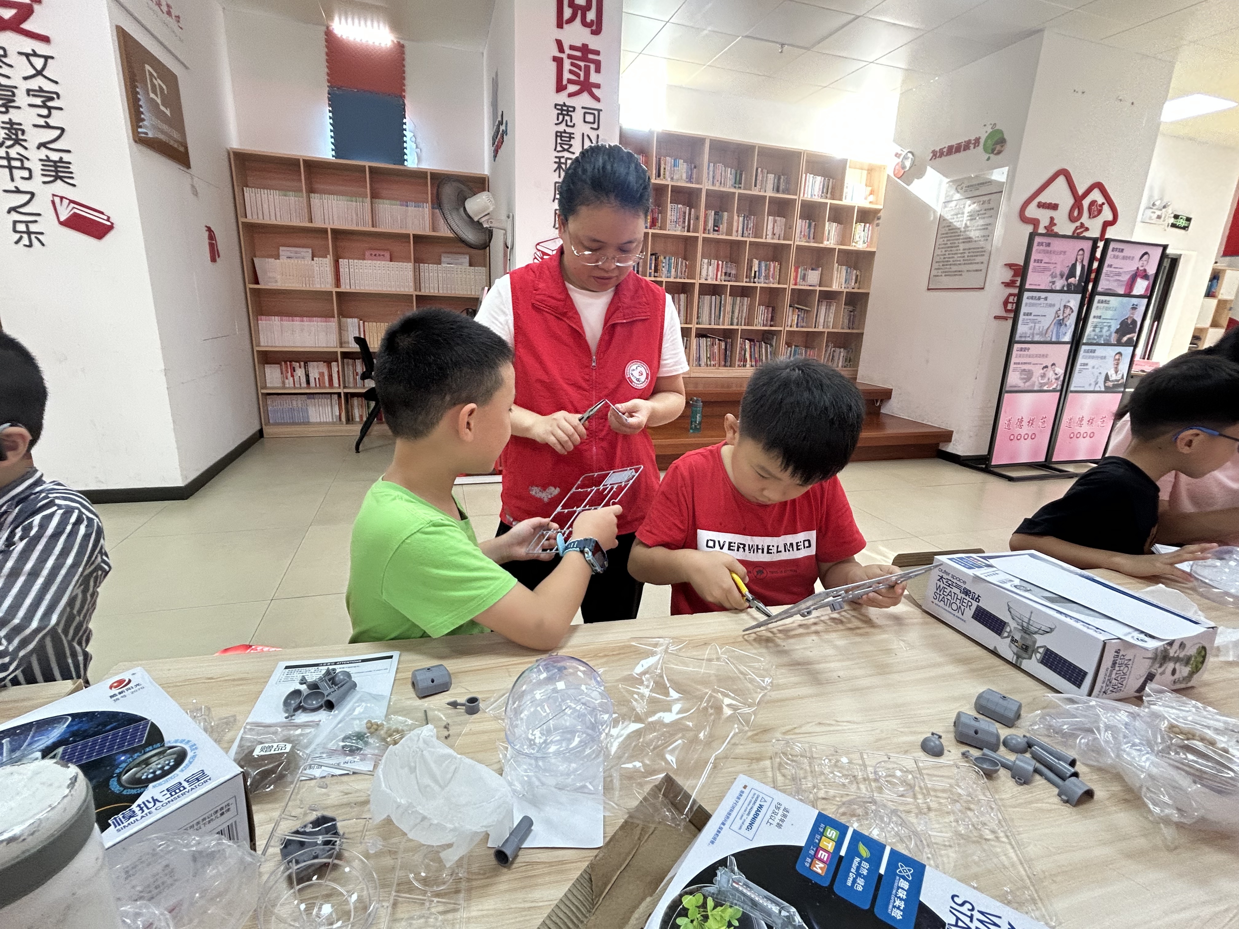 最受孩子们欢迎的当属气象站手工制作环节。在讲解完制作原理和步骤后,工作人员与现场手把手教学,引导青少年两两结对、分工合作。孩子们兴致勃勃地拿起材料,有的搭建支架,有的安装“风向标”“雨量器”部件,在动手实践中,不仅深入理解了气象仪器的工作原理,更提升了科学实践能力与团队协作能力。通过大家齐心协力,一个个造型别致、功能齐全的迷你气象站陆续诞生,孩子们的脸上洋溢着自豪的笑容。