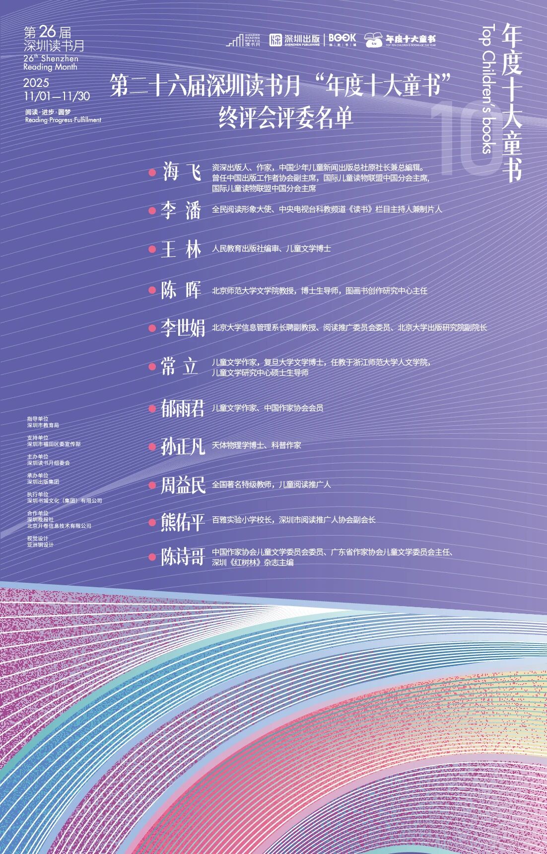 十二载春秋轮回,十二载书香传递。“年度十大童书”评选早已超越简单的榜单发布,始终坚守与童心同行,以书为媒,向梦而行,持续为推动童书出版与少儿阅读、培育书香社会注入温暖力量,守护每一个孩子与好书相遇的权利,为“爱阅之城”注入源源不断的文化活力。