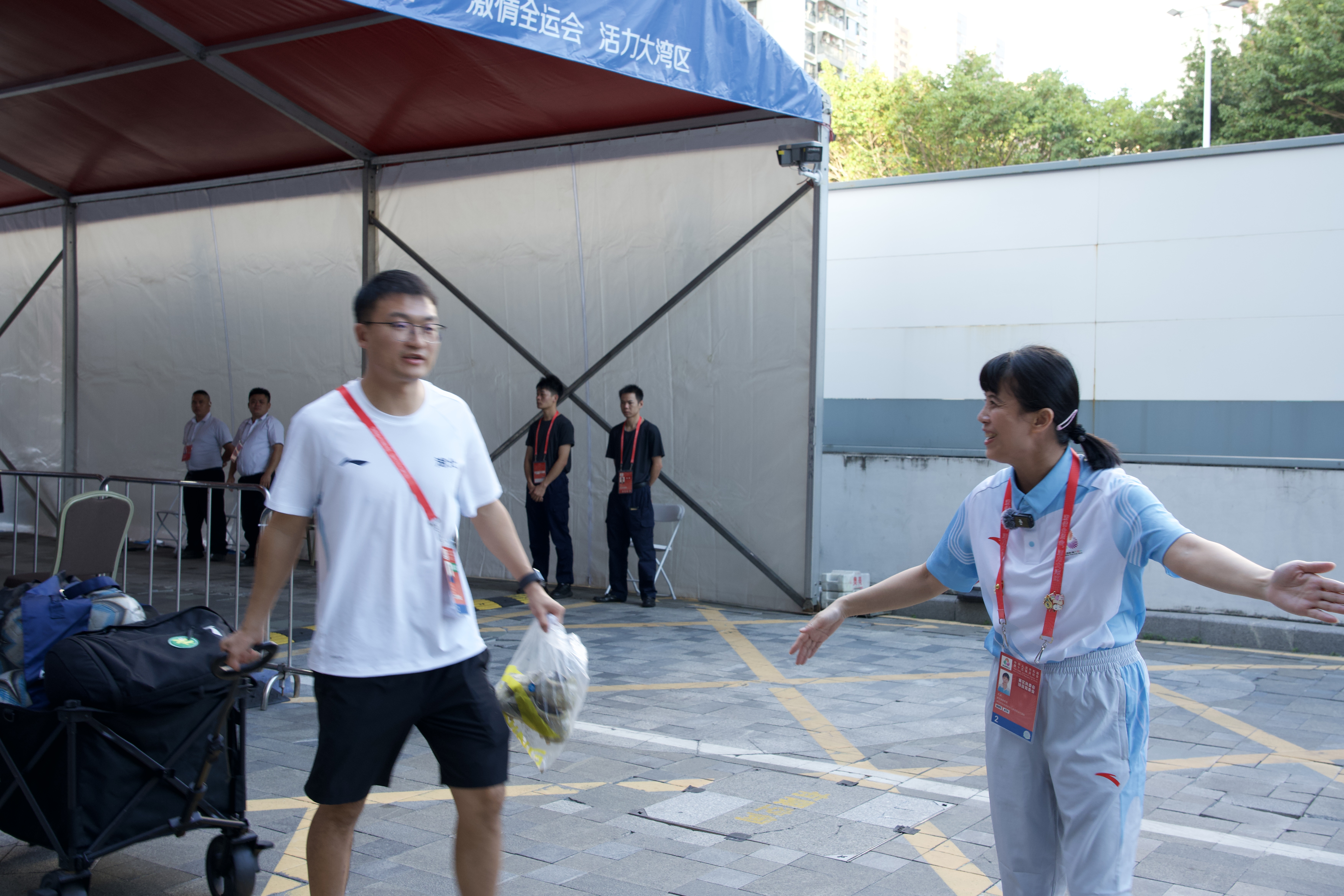 觀眾服務處李尚友,是一名有20餘年文體工作經驗的老文體人,他在採訪中表示,服務好每一位觀賽市民是他的本職工作也是一份榮耀,尤其當看到有需要的市民順利觀賽、露出笑容時,我自己也感到特別開心。而在球隊接待一線,行政接待處的王冰,24小時駐守酒店,全心投入。“我們每天都在想,怎樣讓隊員們在寶安住得舒心,讓他們感覺像回到家一樣。”從接抵入住到行程安排,每一處細節都經過精心設計,只為參賽隊伍能全程無憂。
