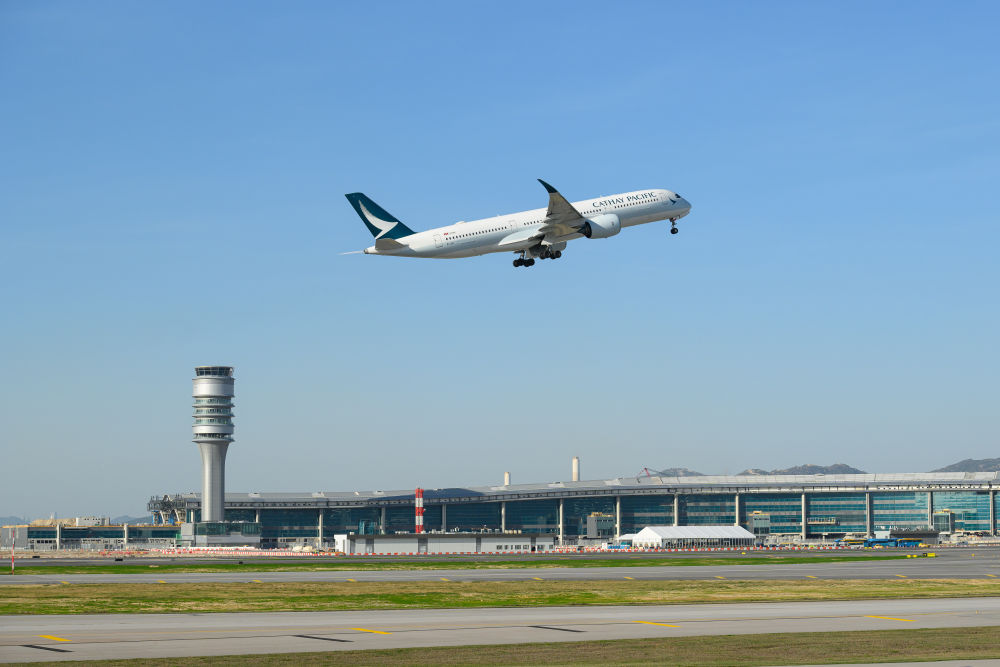 香港国际机场三跑道系统正式启用后,一架飞机从中跑道起飞(2024年11月28日摄)。新华社发