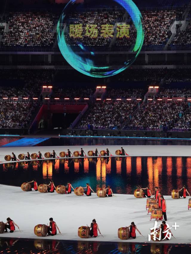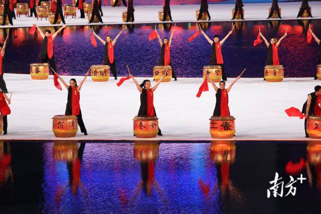 11月9日,第十五届全运会在广州开幕。在暖场节目四个篇章中,潮州二十四节令鼓震撼开场,150名青少年鼓手以青春之鼓擂动传统之声,点燃全运会开幕式现场气氛。