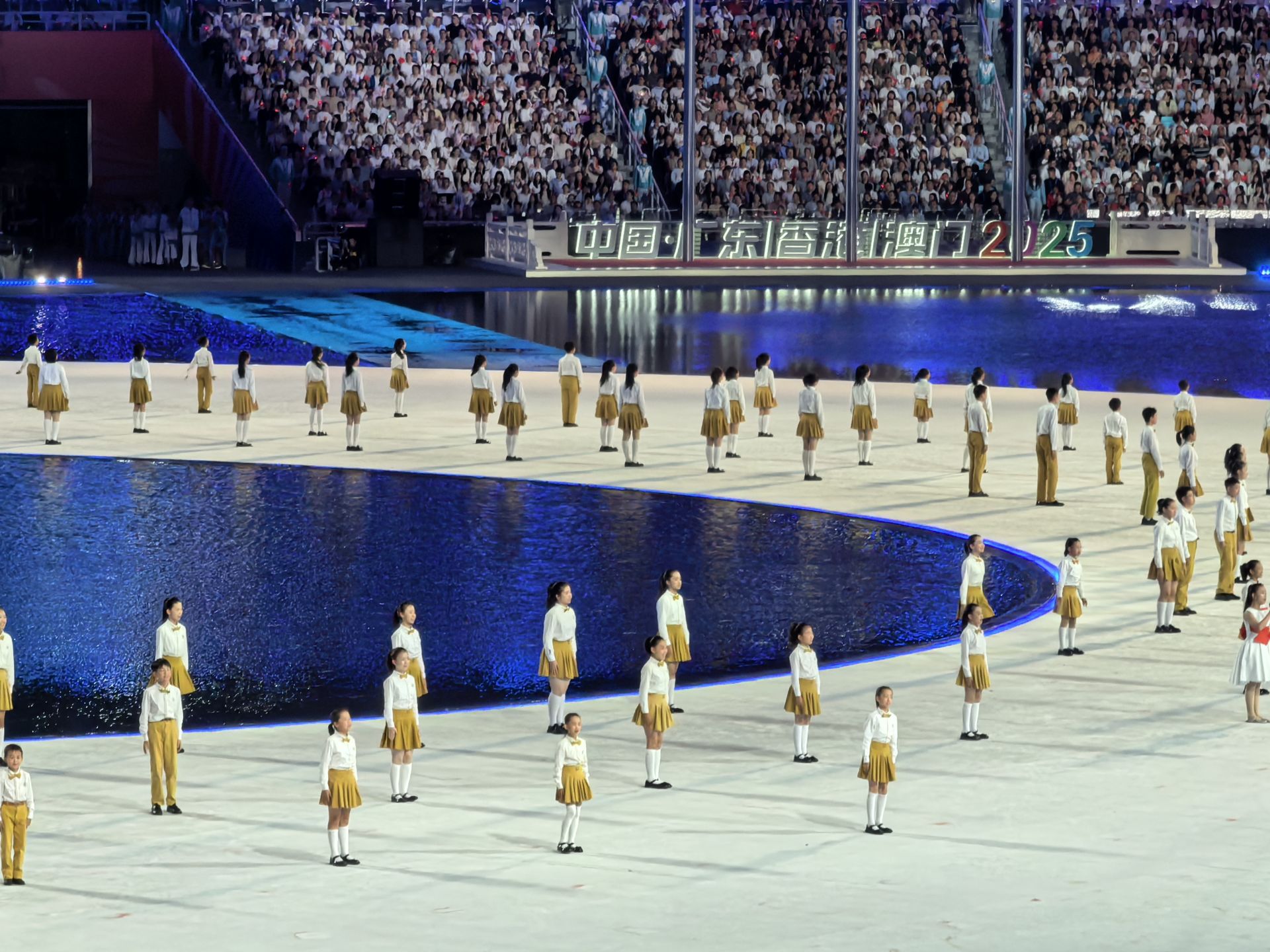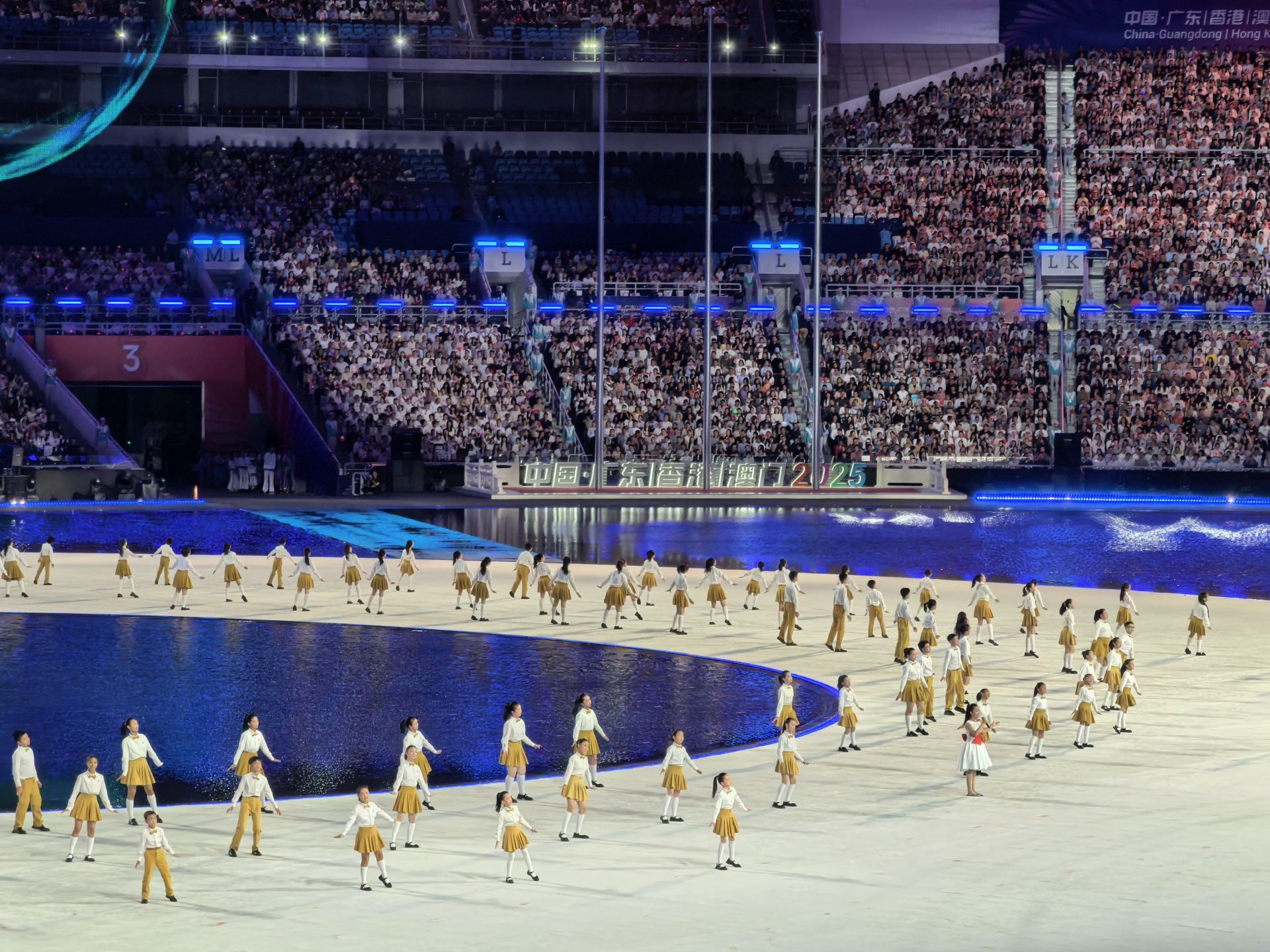 这群平均年龄仅10岁的少年,用汗水织就开幕式的青春底色,更与粤港澳大湾区33支表演团队携手,在尾声共唱十五运会会歌《气势如虹》,以体育与艺术的交融,跃动为全场最具活力的“青春氛围组”。