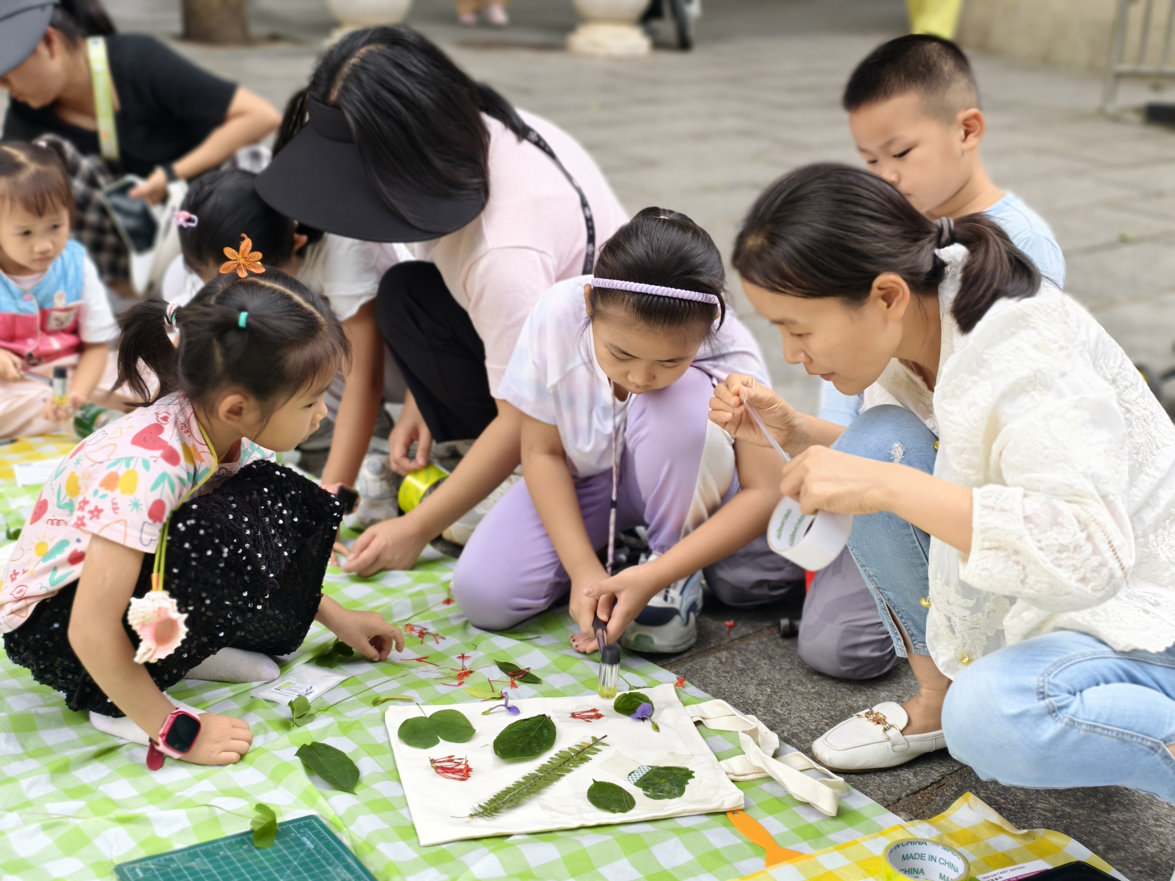 随后的亲子自然探索任务将理论付诸实践。家长与孩子结成“探险小队”,手持特制的《五感观察记录表》,在公园里开启了一段合作探索之旅。孩子们化身“自然侦探”,兴奋地与父母分享自己的每一个微小发现;家长则俯下身,以平等的视角,倾听孩子的奇思妙想,共同完成记录任务。活动的高潮环节是温馨的“亲子叶拓”。大小朋友共同挑选自己最满意的叶片,通过涂色、按压,将叶片独一无二的形态与脉络永恒地印在画布上。