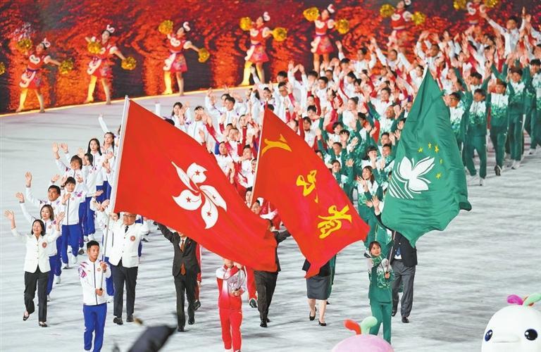 9日晚的广东奥林匹克体育中心华灯璀璨,气氛热烈。这是首次由粤港澳三地联合举办的全国运动会。