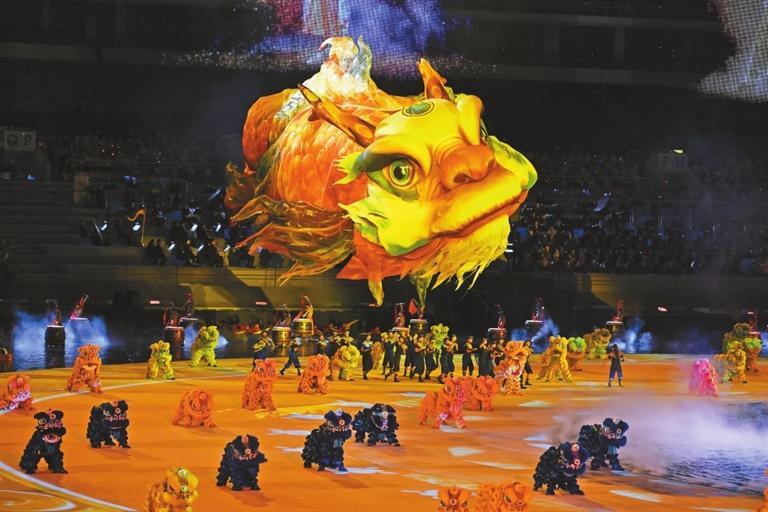 以《圆梦未来》为主题的文体展演拉开序幕。整个演出由“同根同源”“同心同缘”“同梦同圆”3个篇章组成,创新运用体育元素、艺术手段和前沿科技,生动诠释了本届全运会“激情全运会,活力大湾区”的主题。