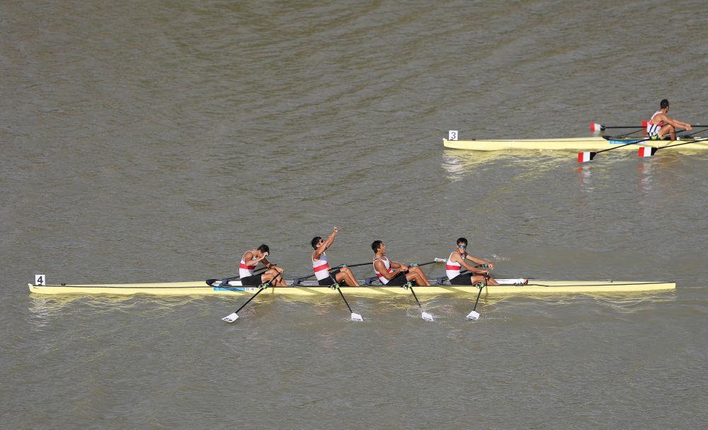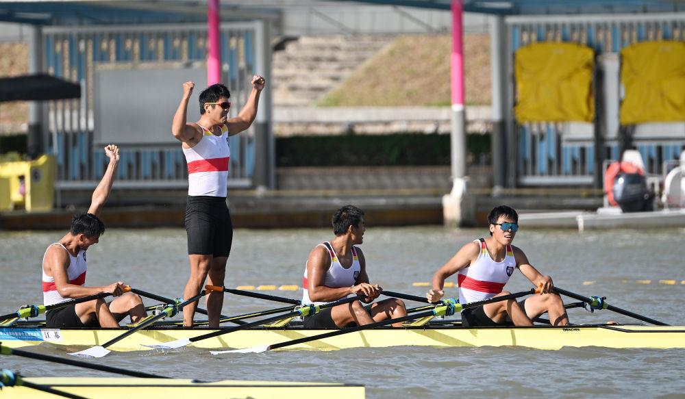 江苏队在第十五届全国运动会男子四人双桨决赛中夺得冠军。