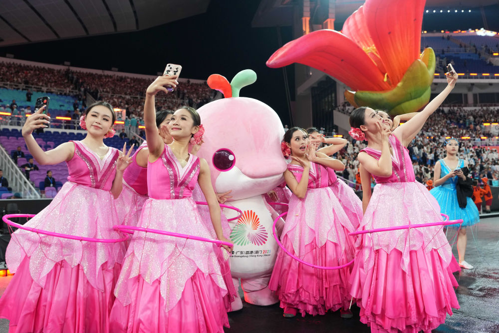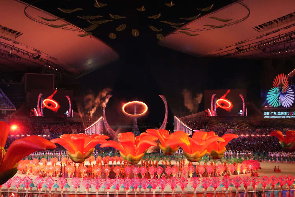 广东省体育代表团、香港特别行政区体育代表团、澳门特别行政区体育代表团在入场仪式上共同入场。新华社记者赖向东摄