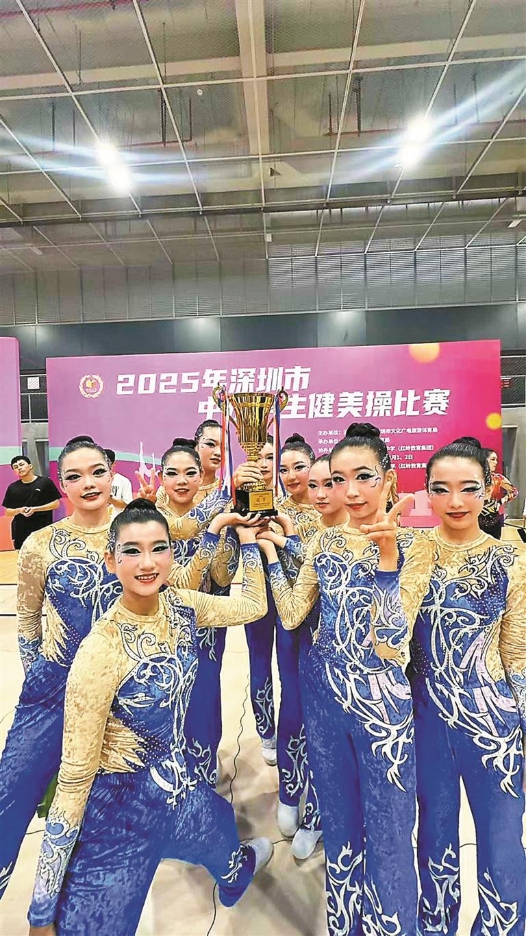 日前,由深圳市教育局、深圳市文化广电旅游体育局联合主办的2025年深圳市中小学生健美操比赛圆满落幕。深圳市龙华区教育科学研究院第二附属学校(简称“第二附属学校”)健美操队凭借精湛技艺与默契配合,在全市众多参赛队伍中脱颖而出,斩获广东省校园健美操系列推广套路(初中组)第一名,指导教师陈炫好、刘雨婷获评“深圳市优秀教练员”,续写该校素质教育的亮眼答卷。