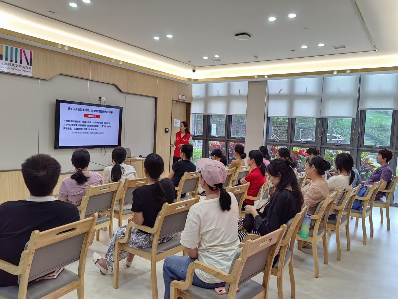 近日,在南山区西丽街道曙光社区党群服务中心的活动室里,一位年轻的妈妈正凝神记录,当讲师问到“你是否也曾因孩子写作业拖拉而忍不住提高音量”时,她停下笔,若有所思地微微点头,这几乎是现场许多家长共同的神情。