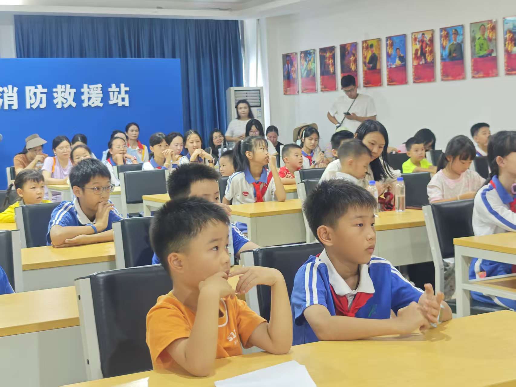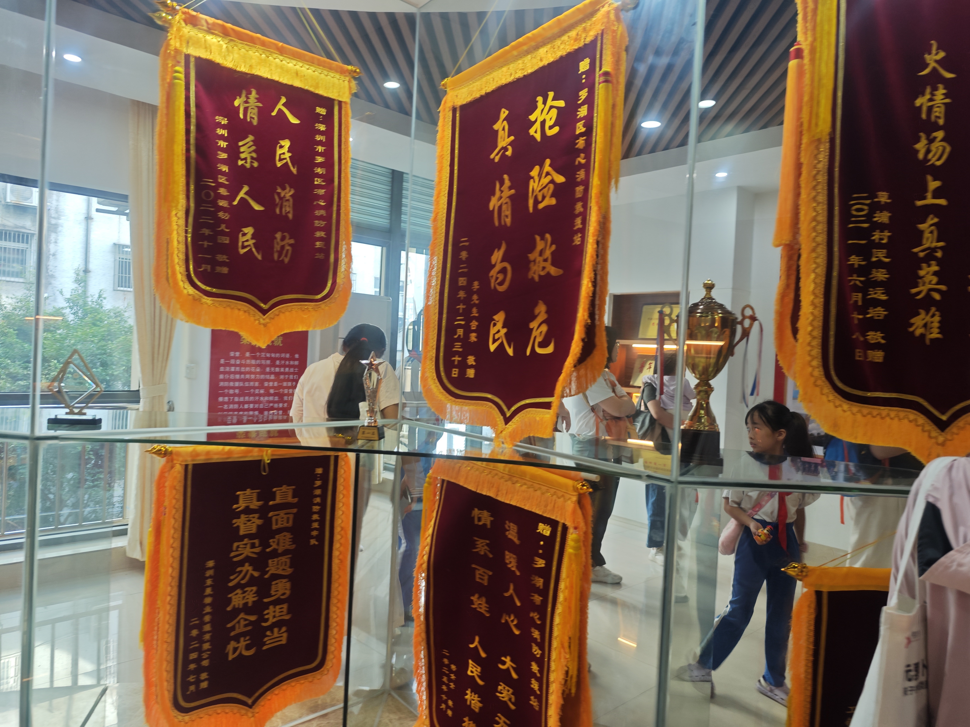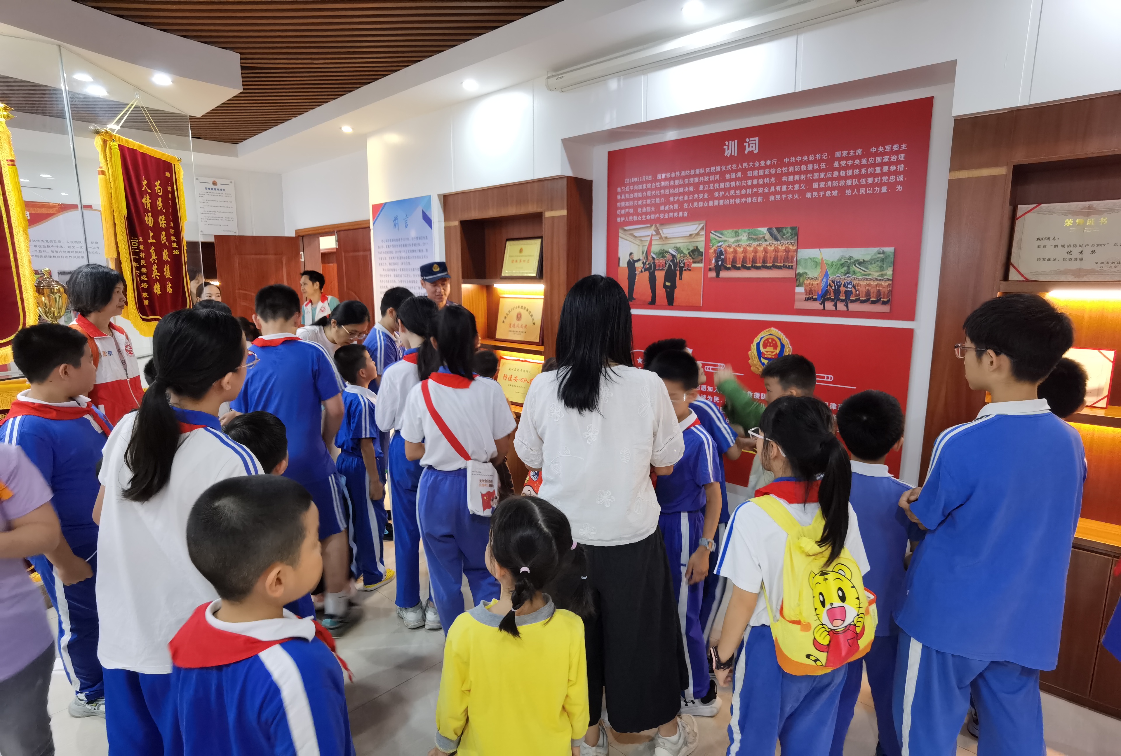 孩子们紧紧围在旁边,眼睛瞪得大大的,听得全神贯注,不时还发出阵阵惊叹。随后,众人来到荣誉室,一面面锦旗、一排排奖状诉说着消防站的光荣历史。指导员声情并茂讲述,大家对消防工作理解更深,纷纷表示要传承消防员精神。