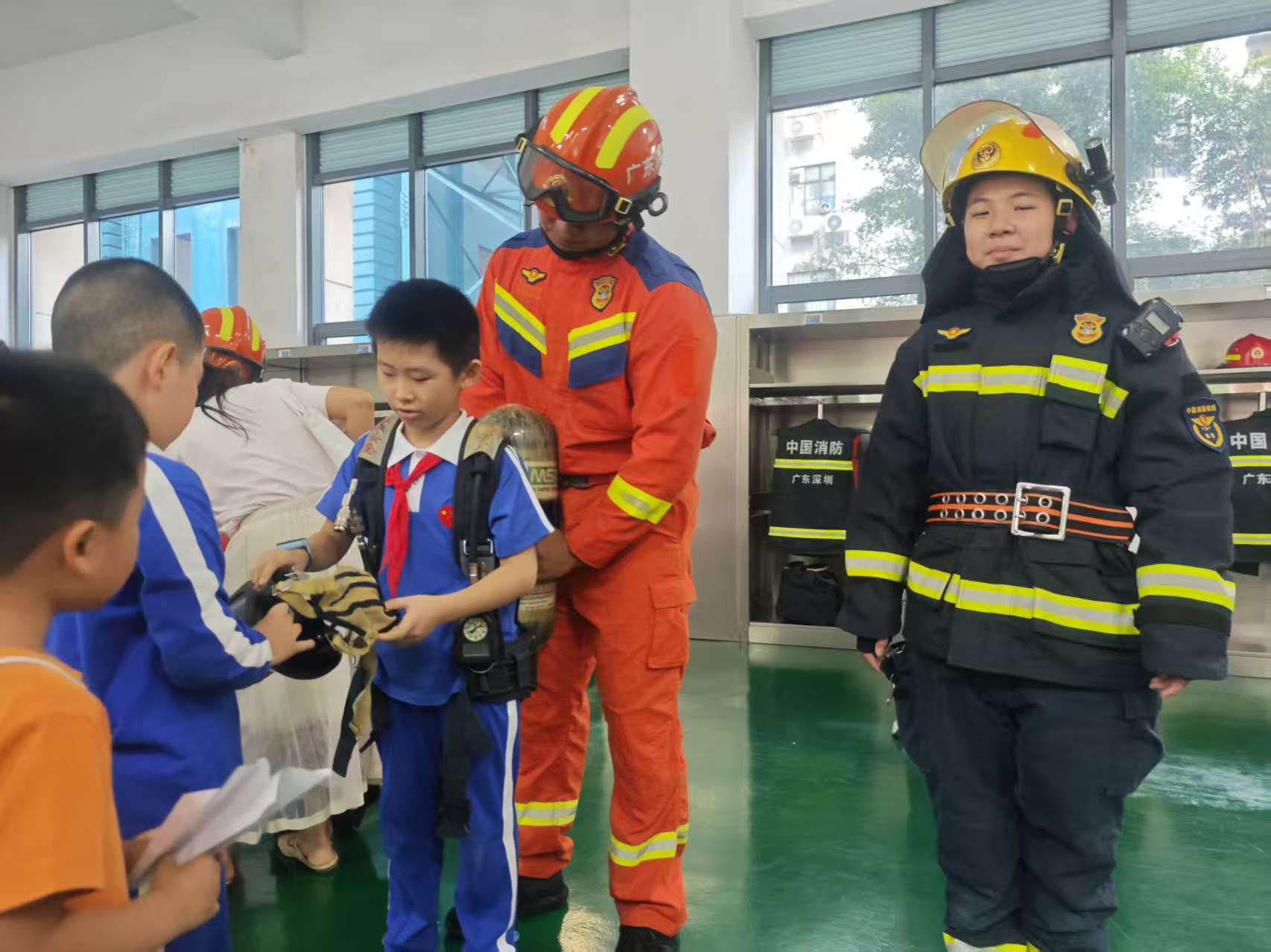 来到个人防护装备展示区,厚重的防火服、空气呼吸器等整套装备重达十公斤以上,让家长和孩子直观感受消防员逆行火场的艰辛。部分勇敢的孩子在鼓励下体验穿戴,艰难穿上装备后,切实体会到“火焰蓝”肩头的重量与责任,敬意油然而生。