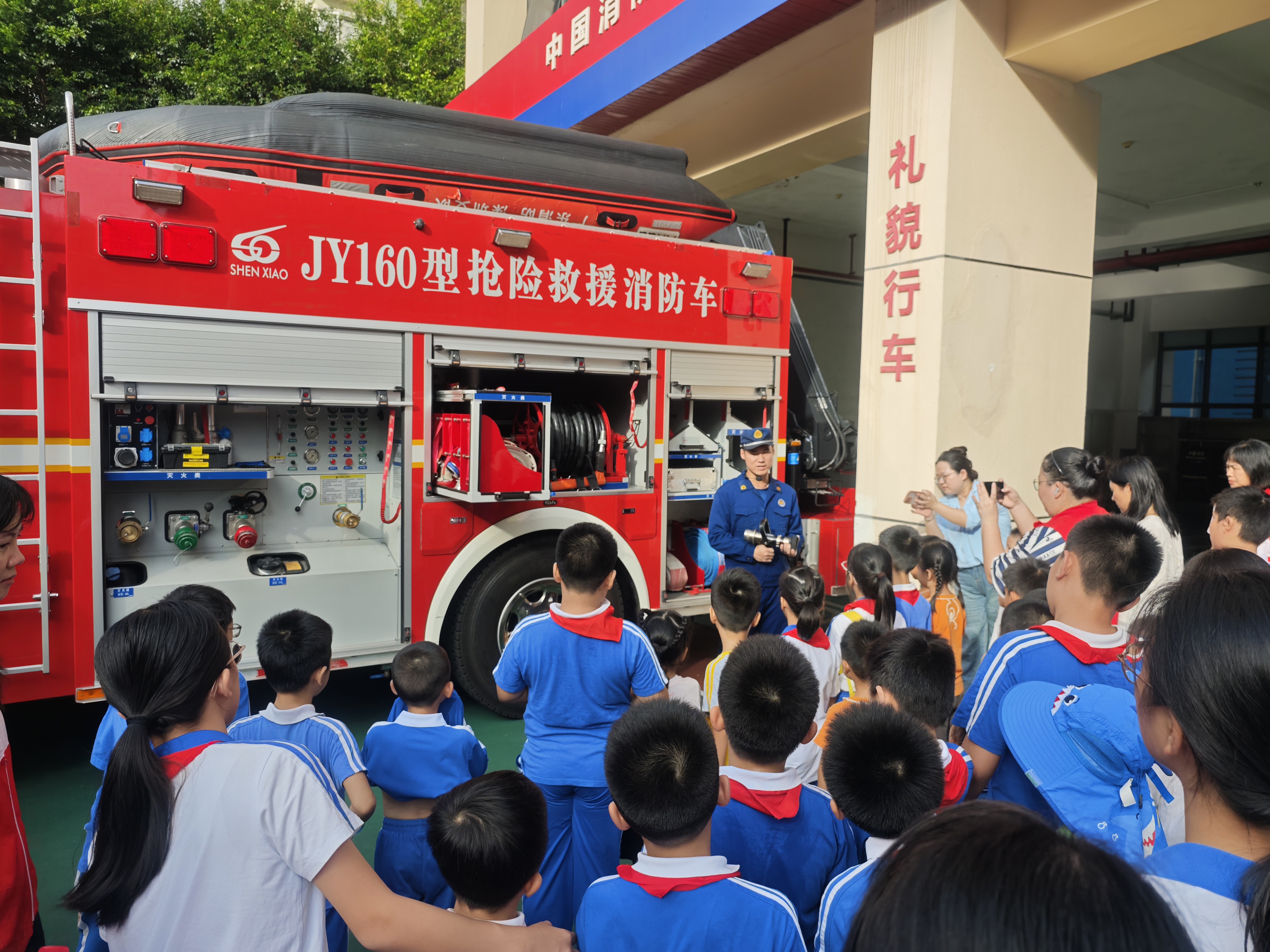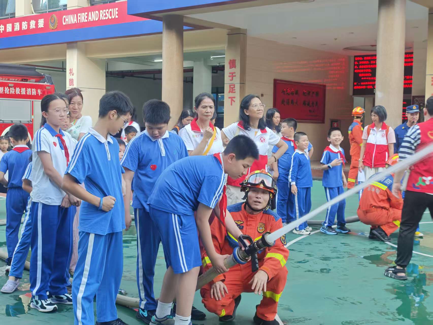 此次活动由深圳市社联社工服务中心社工、新时代文明实践站志愿者以及翠鹏社区妇联携手深圳市罗湖区布心消防救援站共同策划,50余名亲子家庭踊跃报名参与,通过“场景化教学 + 互动式实践”的创新模式,深入消防一线,以沉浸式学习提升青少年安全素养,为社区安全治理注入新活力。