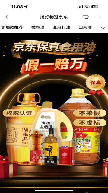 11月10日,记者从京东获悉,即日起京东超市正式推出食用油“假一赔万”品质保障服务。