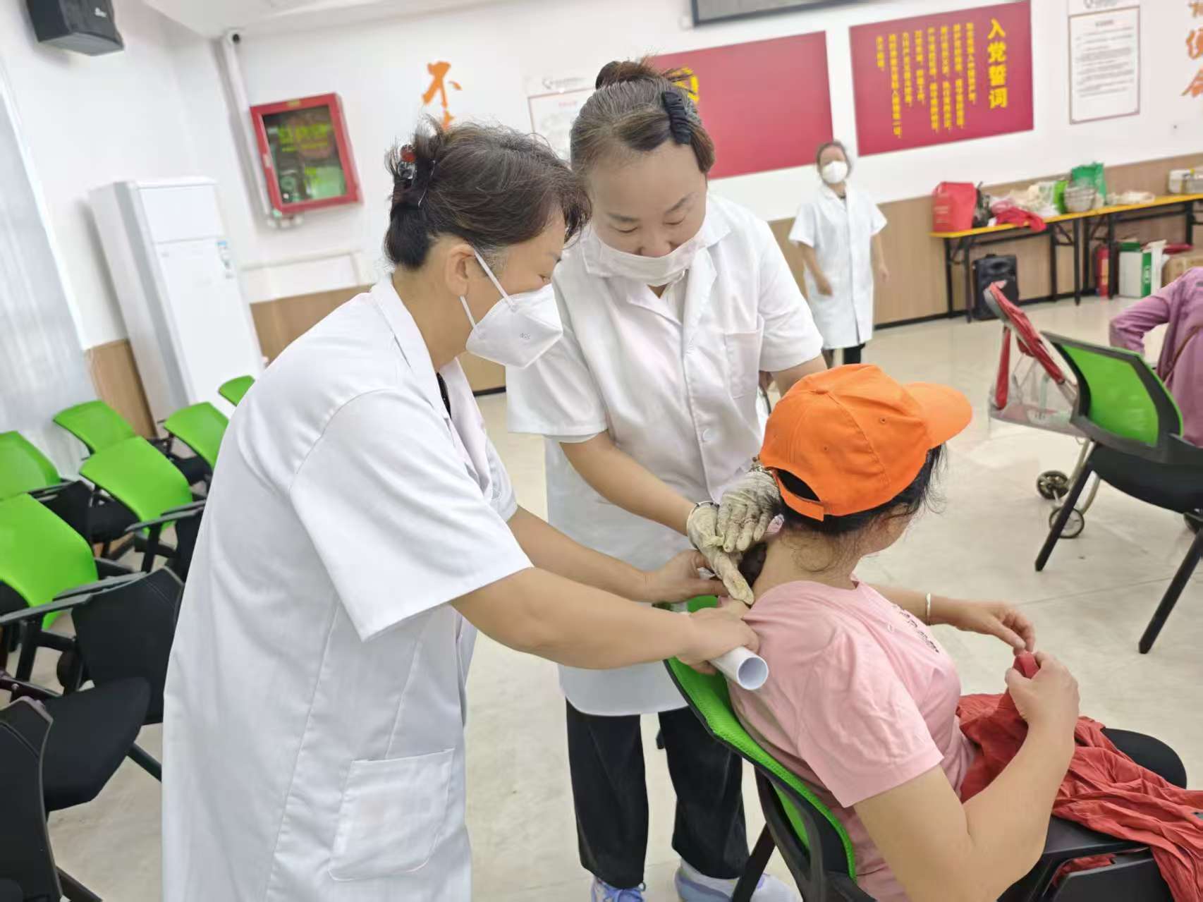 随后,专业健康师携带精心配制的中药膏剂登场,现场瞬间弥漫起淡淡的草本清香。健康师根据每位长者的身体状况,精准定位不适部位——有的长者常年受老寒腿困扰,健康师便重点为其热敷膝盖;有的长者肩颈僵硬,健康师则细致地为其涂擦药膏并进行热敷按摩;还有的长者后背发凉,健康师也一一给予针对性护理。热敷过程中,健康师还不断询问长者感受,调整热敷温度与力度,细致入微的服务让长者倍感贴心。