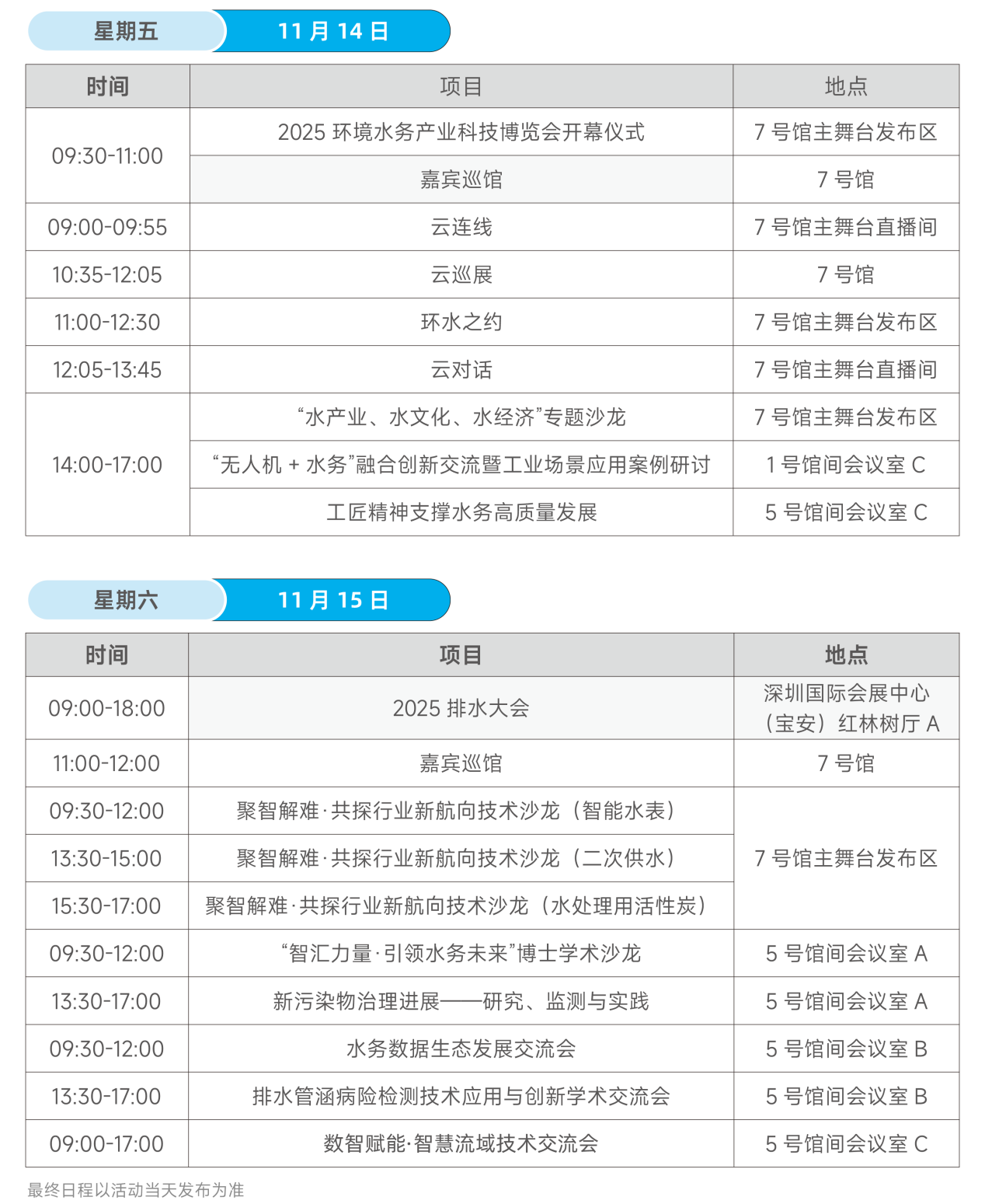 本届水博会设有学术论坛、新品发布、供需对接、云端活动、“环水之约”五大亮点活动,以丰富的内容矩阵全景呈现行业智慧魅力。