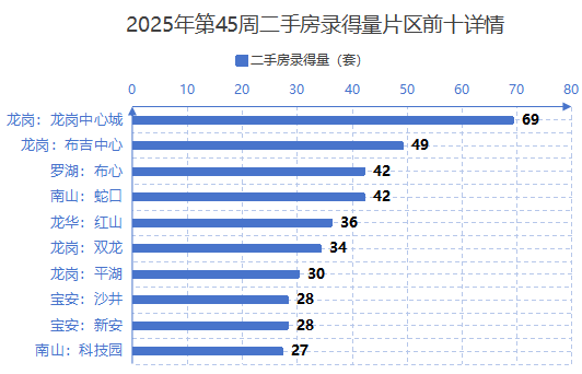 从片区表现来看,本周龙岗的中心城、布吉中心、双龙和平湖4个片区进入成交前十,龙岗仍是片区上榜最多的行政区。