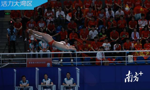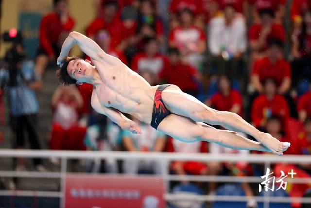 比赛中,奥运冠军王宗源发挥稳定,从第1轮开始,总分一直稳居第一。每一轮跳完,观众席都会传来阵阵欢呼与掌声。