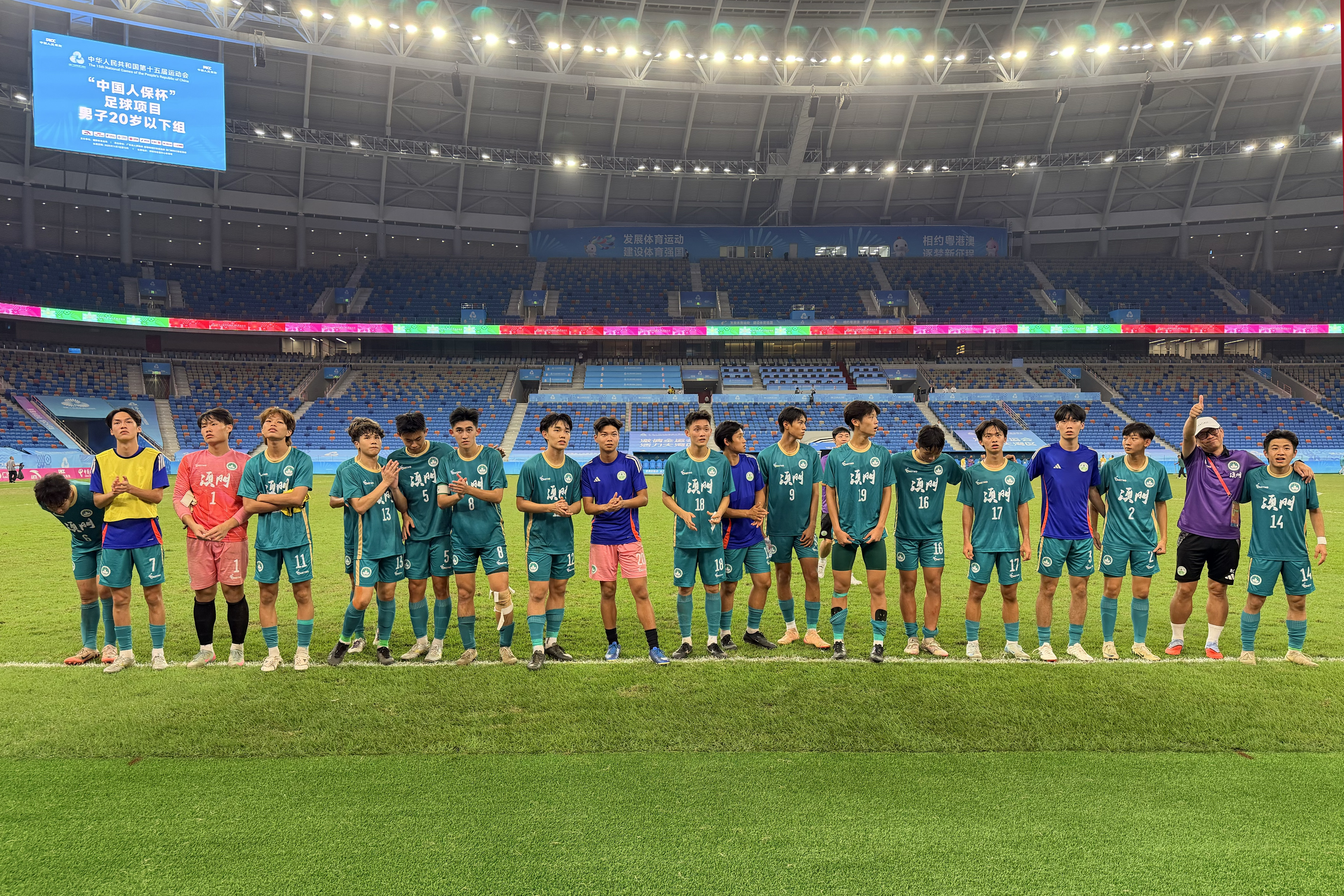 11月7日,澳门队在十五运会足球项目男子20岁以下组排位赛中0比3不敌上一届冠军浙江队,获得第13名。这是澳门队历史上第一次参加全运会足球项目比赛,从第一场比赛的慌慌张张,到最后两场比赛打出了有威胁的进攻,一度接近破门,这支平均年龄最小的队伍,已经在全运会实现了突破。