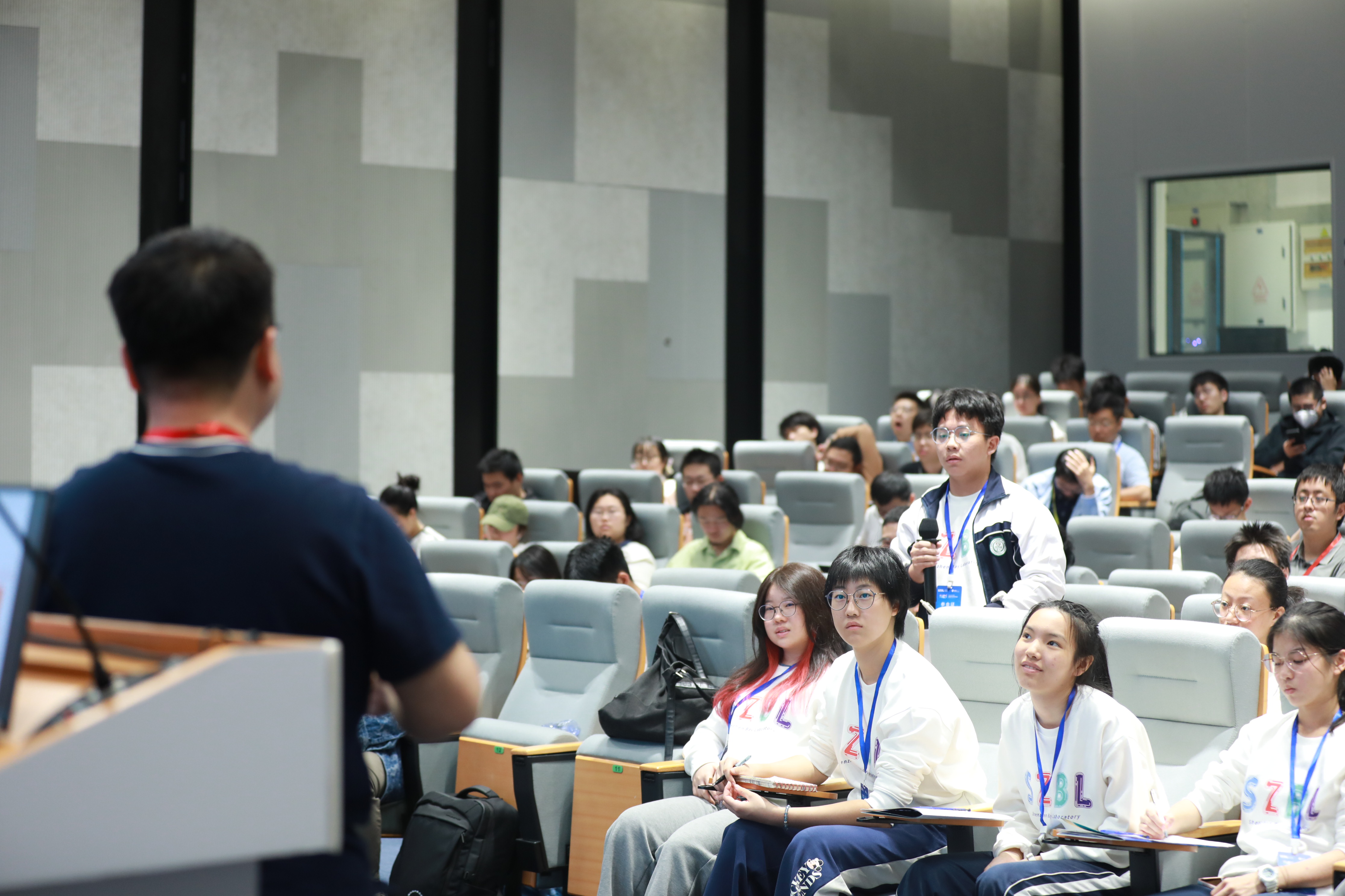 论坛尾声,同学们走入“第14届复杂体系计算统计力学研讨会”现场。在这场高水平学术会议上,他们不仅认真聆听了关于蛋白质结构预测、人工智能辅助分子模拟的前沿报告,更在互动环节积极提问、毫不怯场,展现出新一代青少年出色的思辨能力。