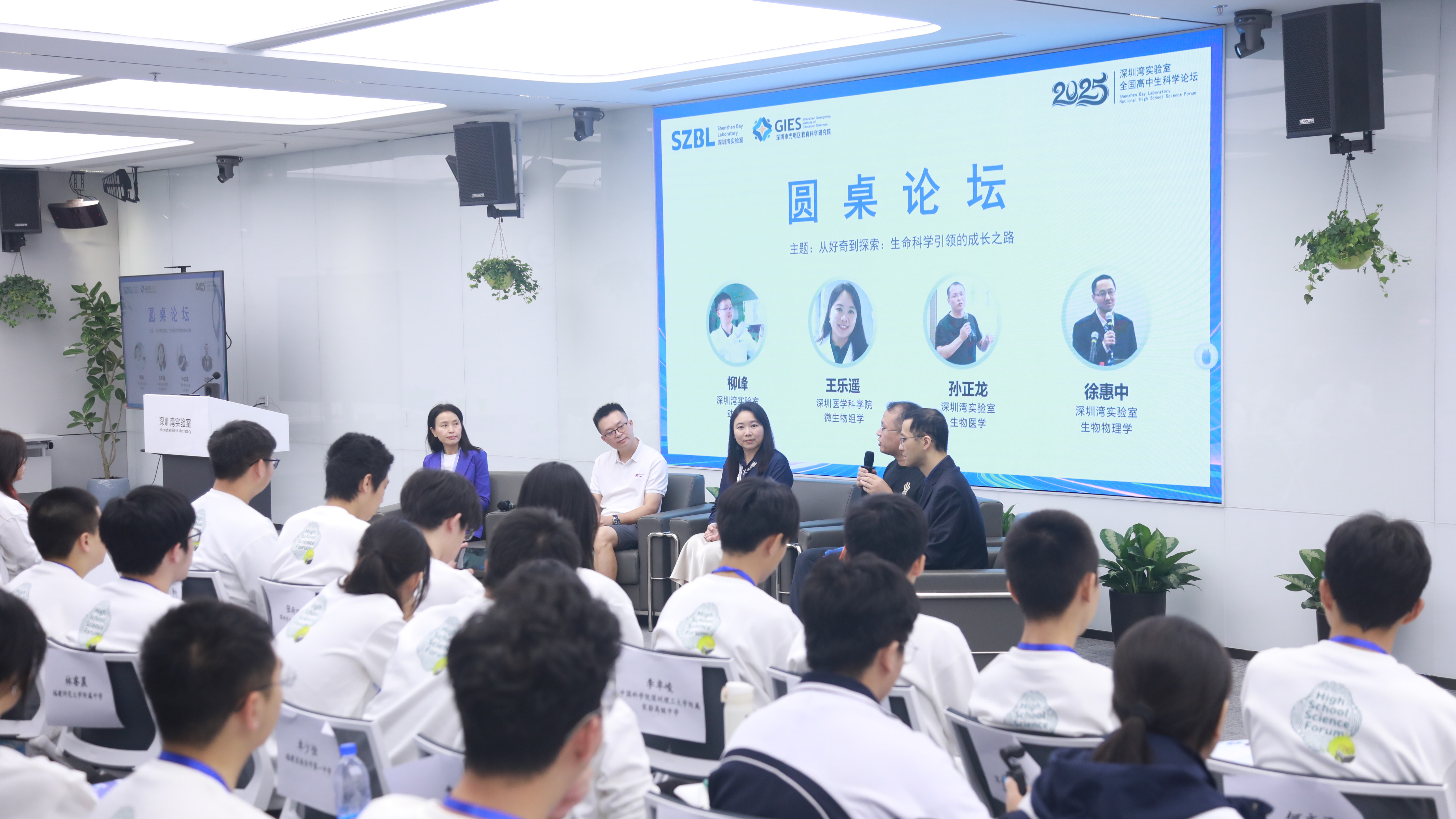 思想的激荡,在圆桌论坛迎来高潮。特邀嘉宾王乐遥、柳峰、孙正龙、徐惠中,四位科学家围绕“从好奇到探索:生命科学引领的成长之路”展开对谈。现场互动热烈,同学们接连抛出专业问题:“膨胀显微镜如何保持生物样品原有结构?”“定向分化技术在疾病治疗中有何最新进展?”——其思考深度令科学家不禁惊叹:“这真的是高中生吗?”年轻的思想与成熟的智慧在此刻碰撞生辉。
