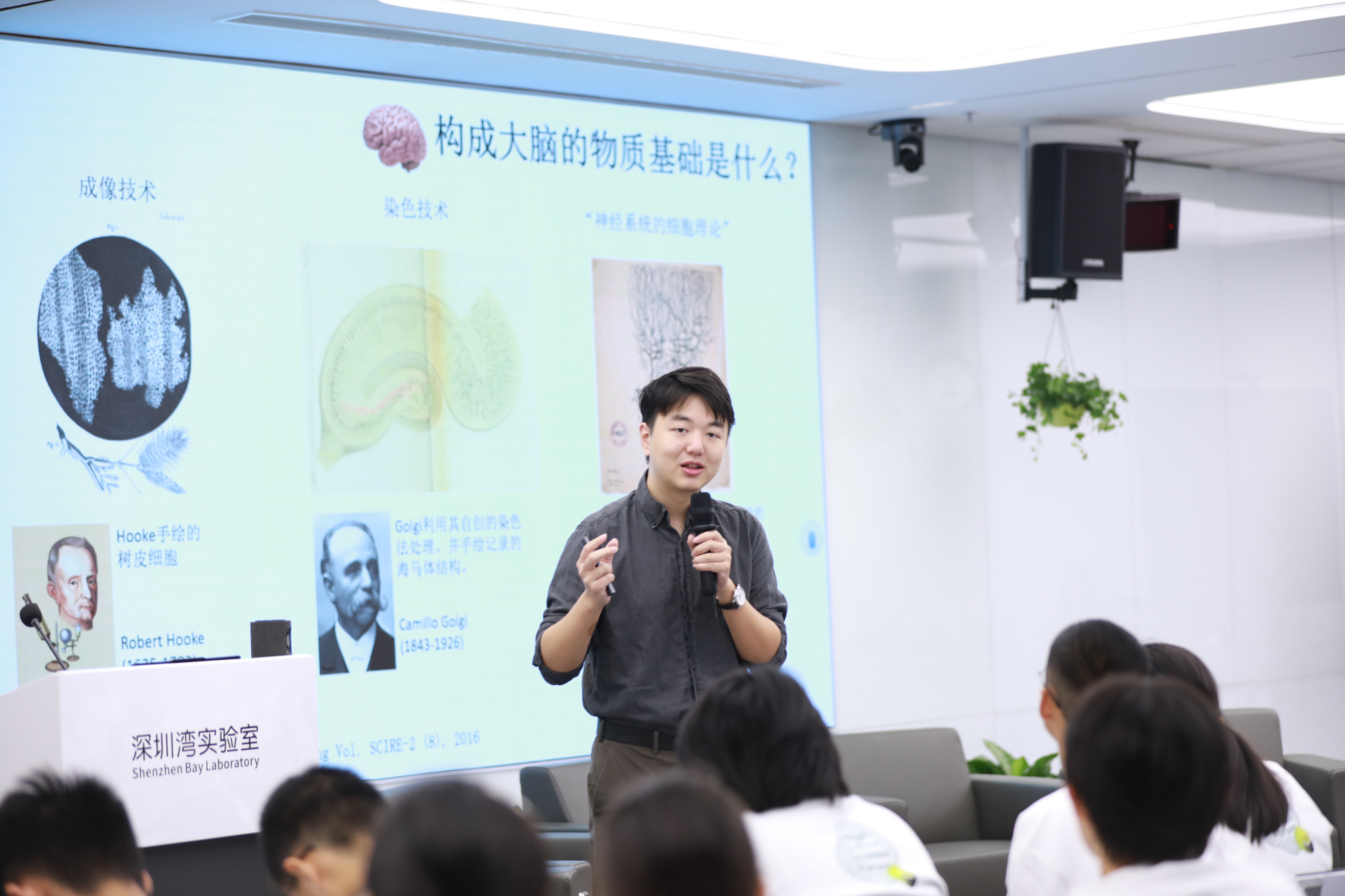 现场更意外上演“追星”场面——深圳外国语学校洪萱同学表示,很早关注曾健智老师,正是老师的科普视频点燃了她对脑科学的学习热情。