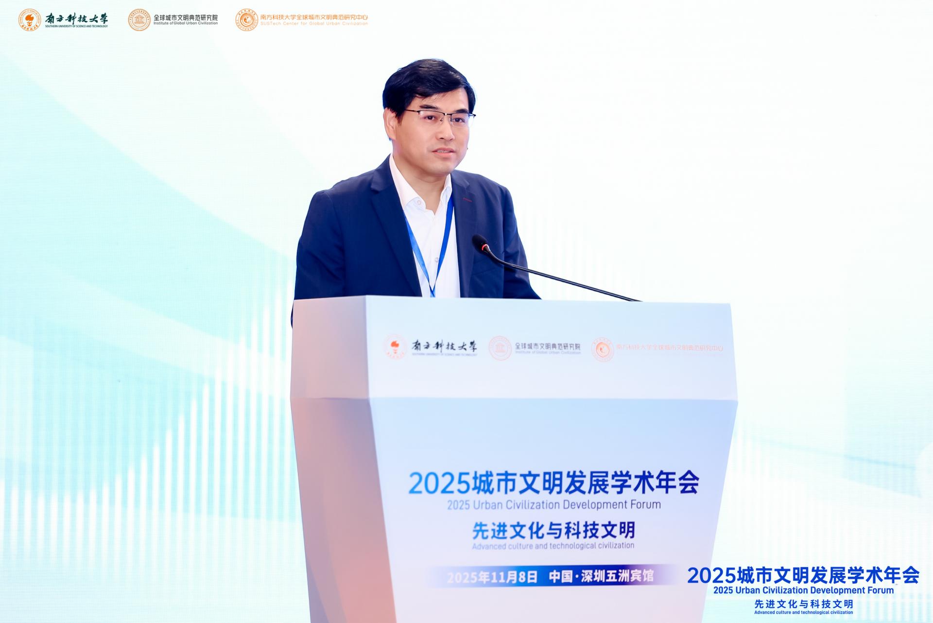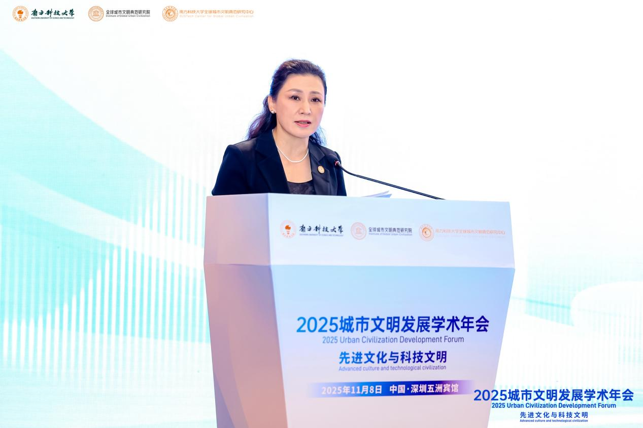 南方科技大学党委书记、全球城市文明典范研究院院长姜虹在致辞中指出,深圳将科技赋能与文化铸魂深度融合,在数智化浪潮中构建起技术创新加人文关怀的城市文明生态。