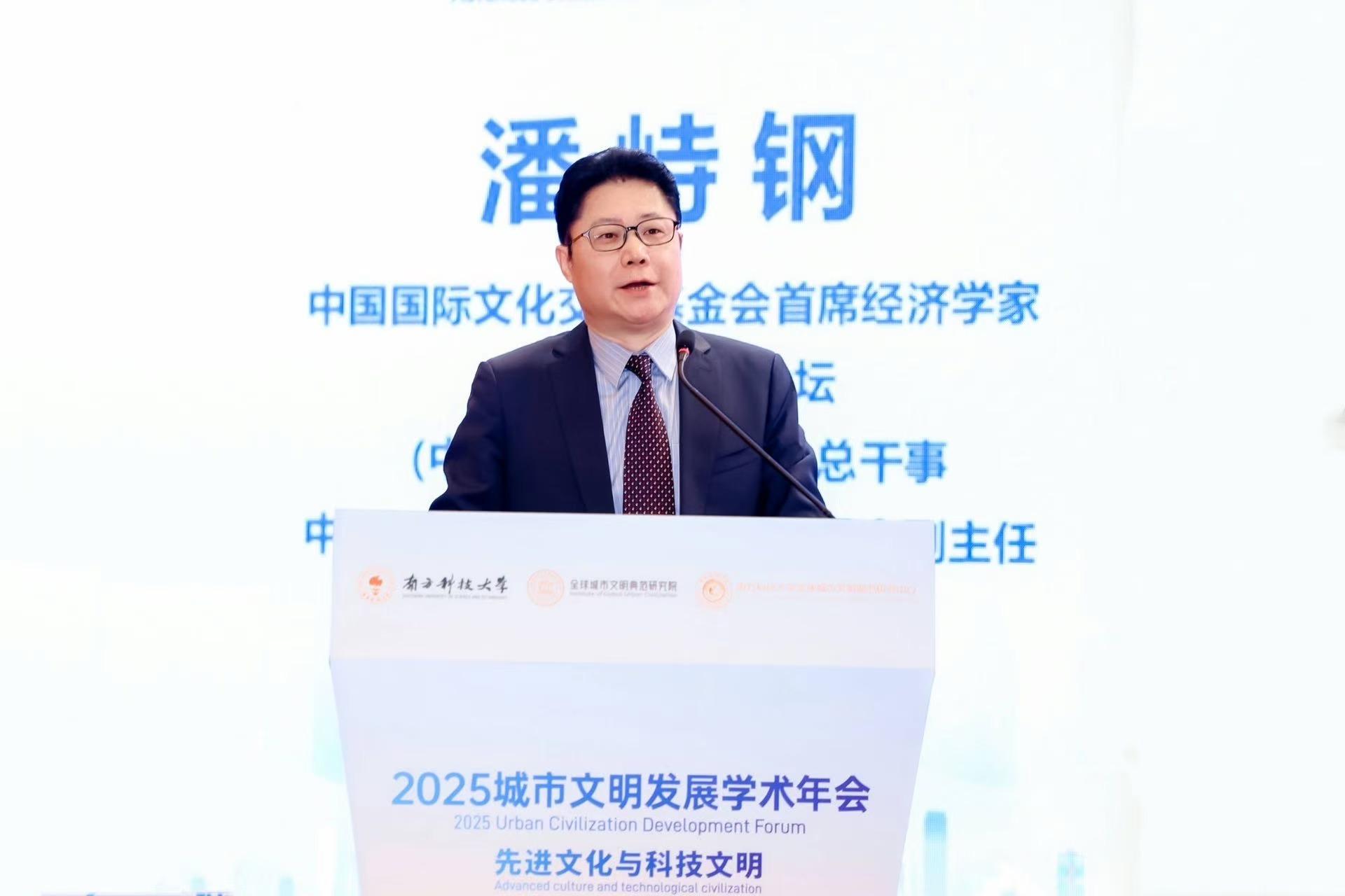 中国国际文化交流基金会首席经济学家、太湖世界文化论坛(中国政府外事论坛)总干事、中国社会工作联合会学术委员会副主任潘峙钢围绕“唯有先进文化才能让科技成为承载人类文明的方舟”主题发表了主旨演讲。