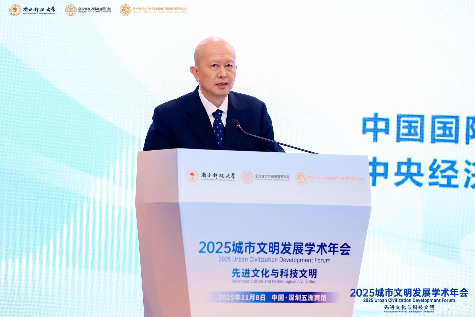 11月8日,2025城市文明发展学术年会(UCDF2025)在深圳市五洲宾馆举行。近200位专家学者围绕人工智能与城市文明建设、科技与人文关系等主题进行深入研讨。