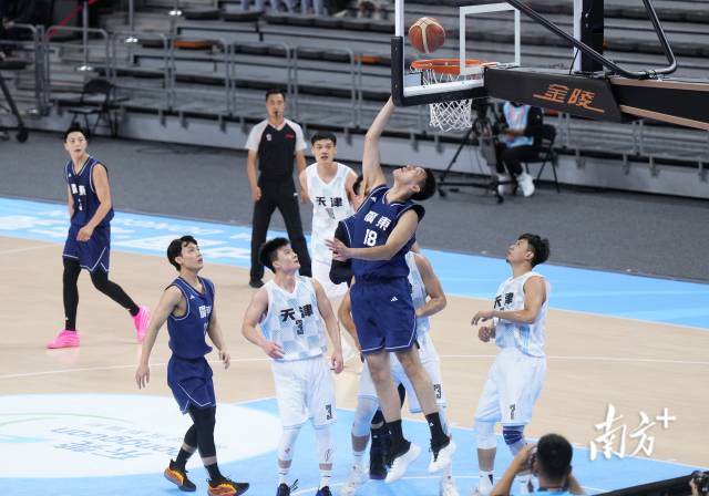 淘汰赛中,广东队用一场酣畅淋漓的胜利延续了全胜势头,以107:65大胜天津队。