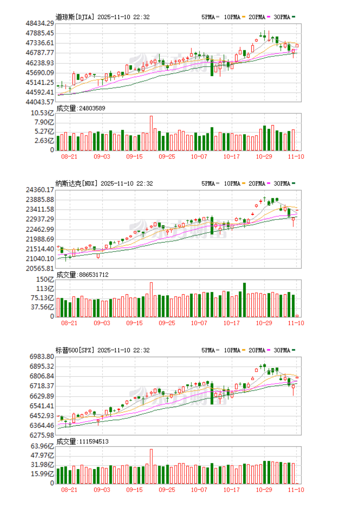 11月10日,美股开盘,三大股指集体高开,道指涨0.23%,纳指涨1.5%,标普500指数涨0.93%。
