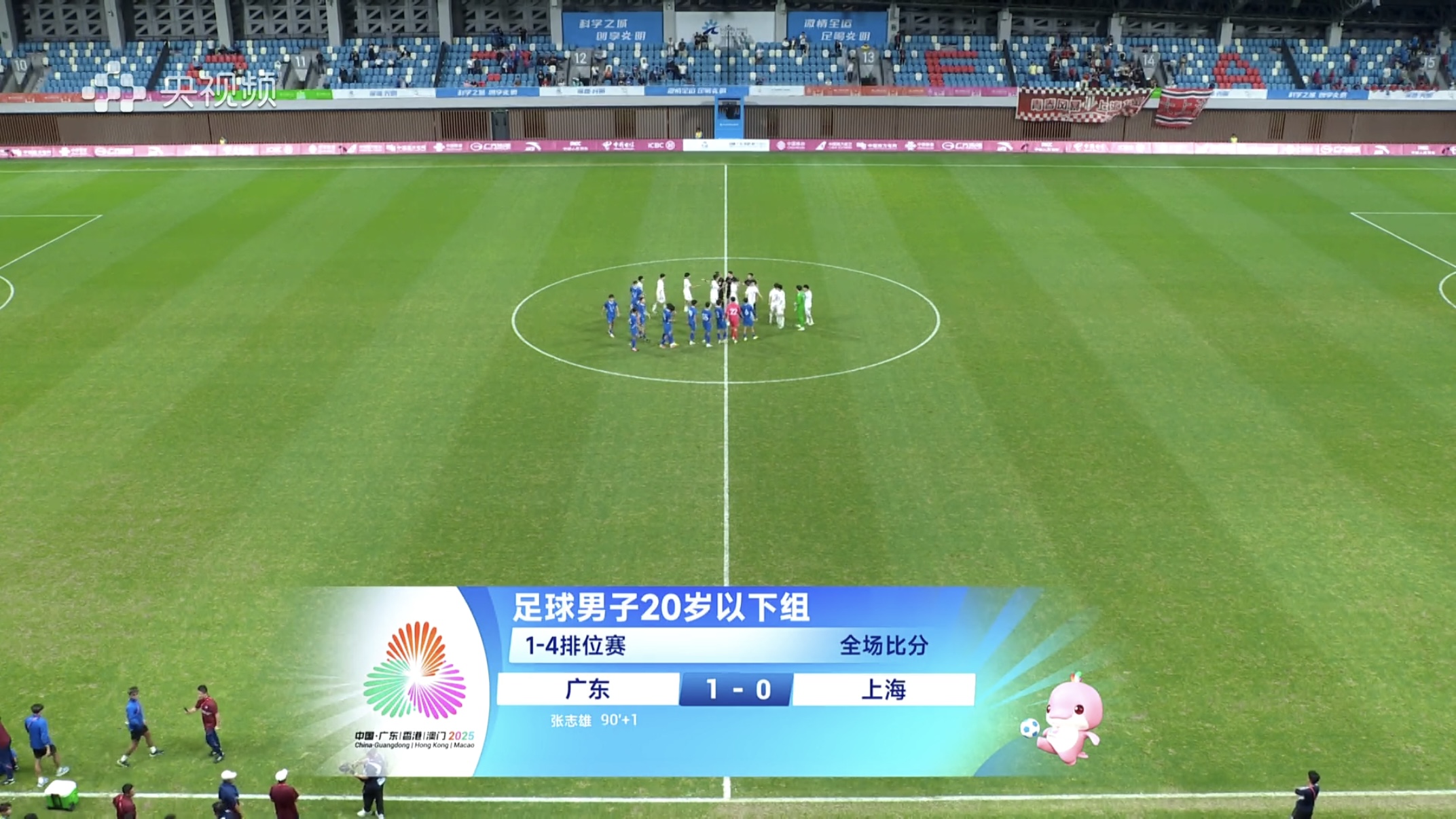 上海队是本届赛事的夺冠热门,阵中蒯纪闻、刘诚宇、李新翔等球员,都已经在中超球队站稳脚跟。面对实力强劲的上海队,广东队不急不躁,与上海队打得有来有回。双方直至下半场第87分钟,广东队球员钟文在左路突破到禁区后被上海队球员铲倒,裁判判罚点球。随后,张志雄将点球罚进,帮助广东队取得领先。