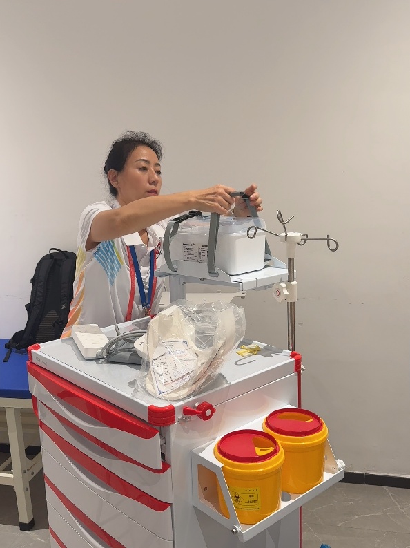此外,醫務部創新推行固定排班制度,在U20賽事中優化人力資源分配,減少崗位磨合期,並增加關鍵點位醫護人員配置,如場邊醫療點(FOP)增派急診外科和創傷骨科醫生,以應對更高強度的賽事需求。這種科學管理方式,確保了保障工作“三確保、一確認”(確保按時到崗、確保崗位值守、確保安全撤離,確認賽委會指令),體現了醫務部在大型賽事管理中的前瞻性和執行力。