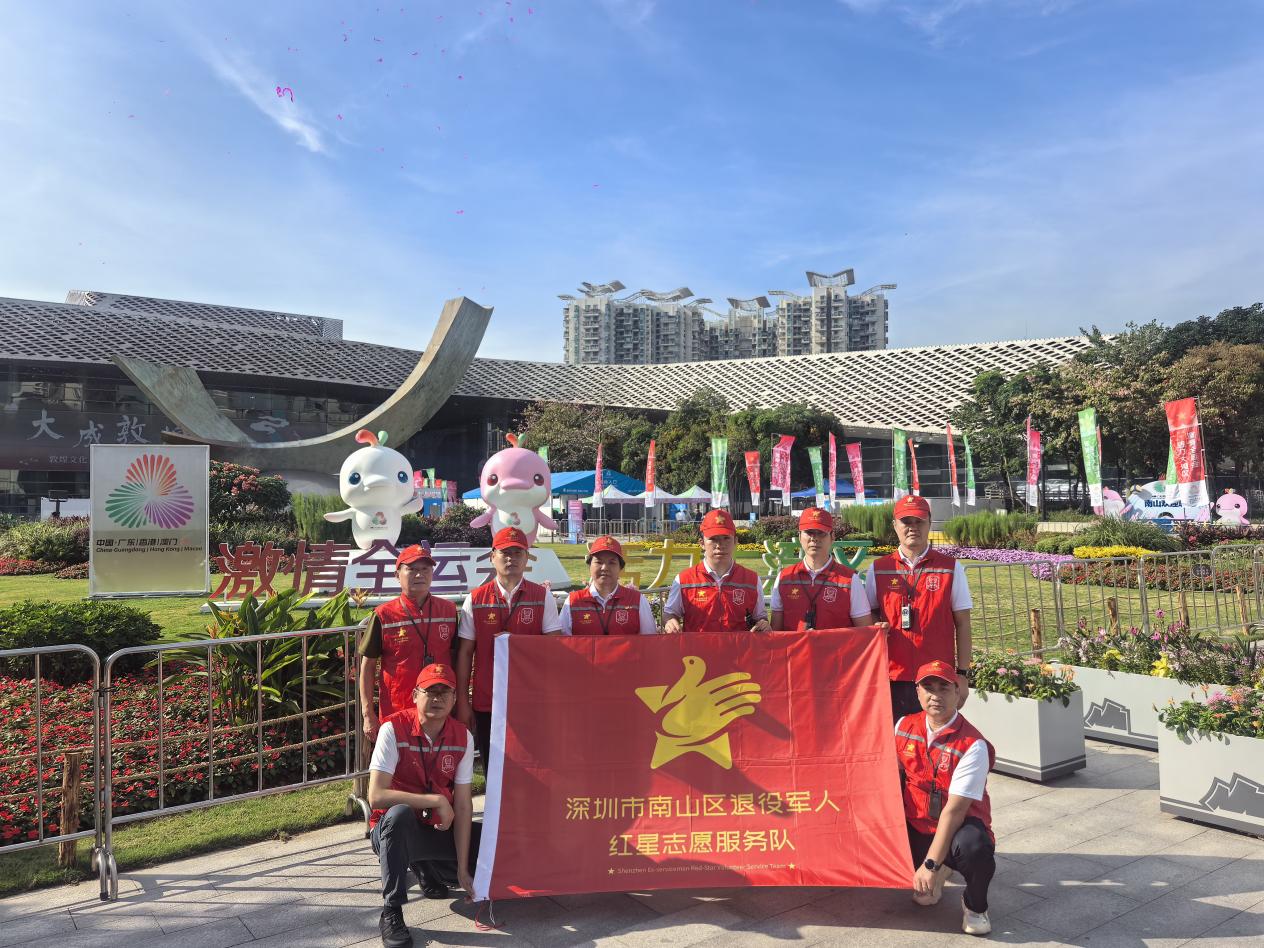 11月10日,南山区退役军人红星志愿服务队举行会议,在明确分工后迅速投入行动,在南山文体中心周边开展志愿服务活动,为市民和观众提供现场咨询引导服务,助力赛事顺利推进。