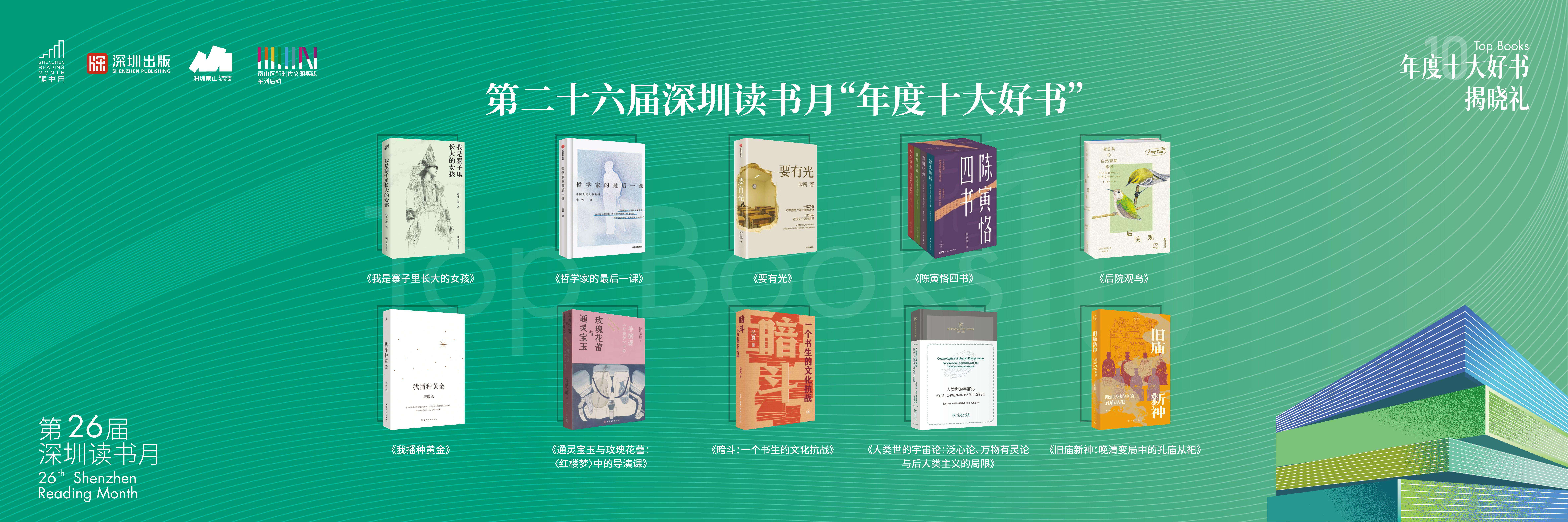 在悠扬的琴诵《流水弦歌伴书行》中,古典琴音与诗意诵读交织,为揭晓礼营造出雅致的文化氛围,将活动推向又一高潮。“年度十大好书”逐一揭晓,并深度解析了作品亮点与价值,让在场读者对这些年度佳作有了更深刻的认知。经过严谨的终评与审慎筛选,《我是寨子里长大的女孩》《哲学家的最后一课》《要有光》《陈寅恪四书》《后院观鸟》《我播种黄金》《通灵宝玉与玫瑰花蕾:<红楼梦>中的导演课》《暗斗:一个书生的文化抗战》《人类世的宇宙论:泛心论、万物有灵论与后人类主义的局限》《旧庙新神:晚清变局中的孔庙从祀》等摘得了本届深圳读书月“年度十大好书”的桂冠。