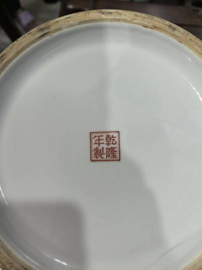 值得注意的是,这件高 61 厘米、带有四字两行楷书手写“乾隆年制” 寄托款(建国初期红色官窑典型标识)的宝字瓶,并非个人独立创作,而是出自景德镇艺术团队的集体协作。