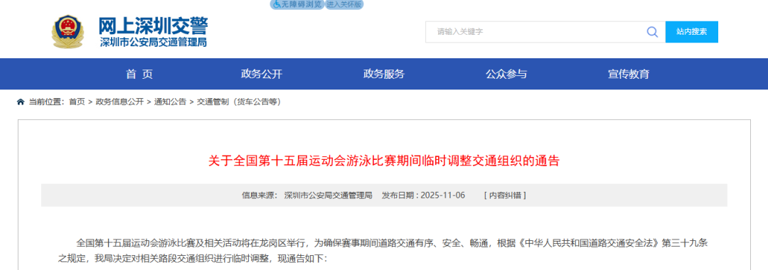根据深圳交警发布通告