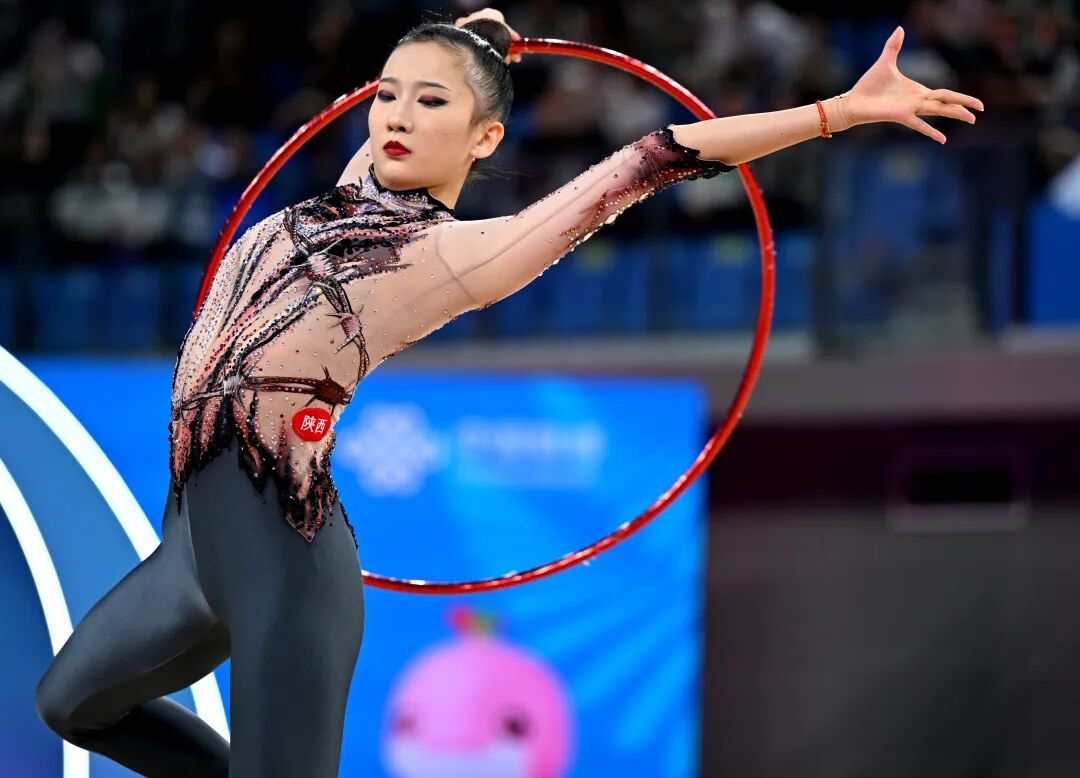11月10日,,第十五届全国运动会(以下简称“十五运会”)艺术体操项目个人全能决赛在深圳坪山举行,陕西队选手王子露夺得冠军。