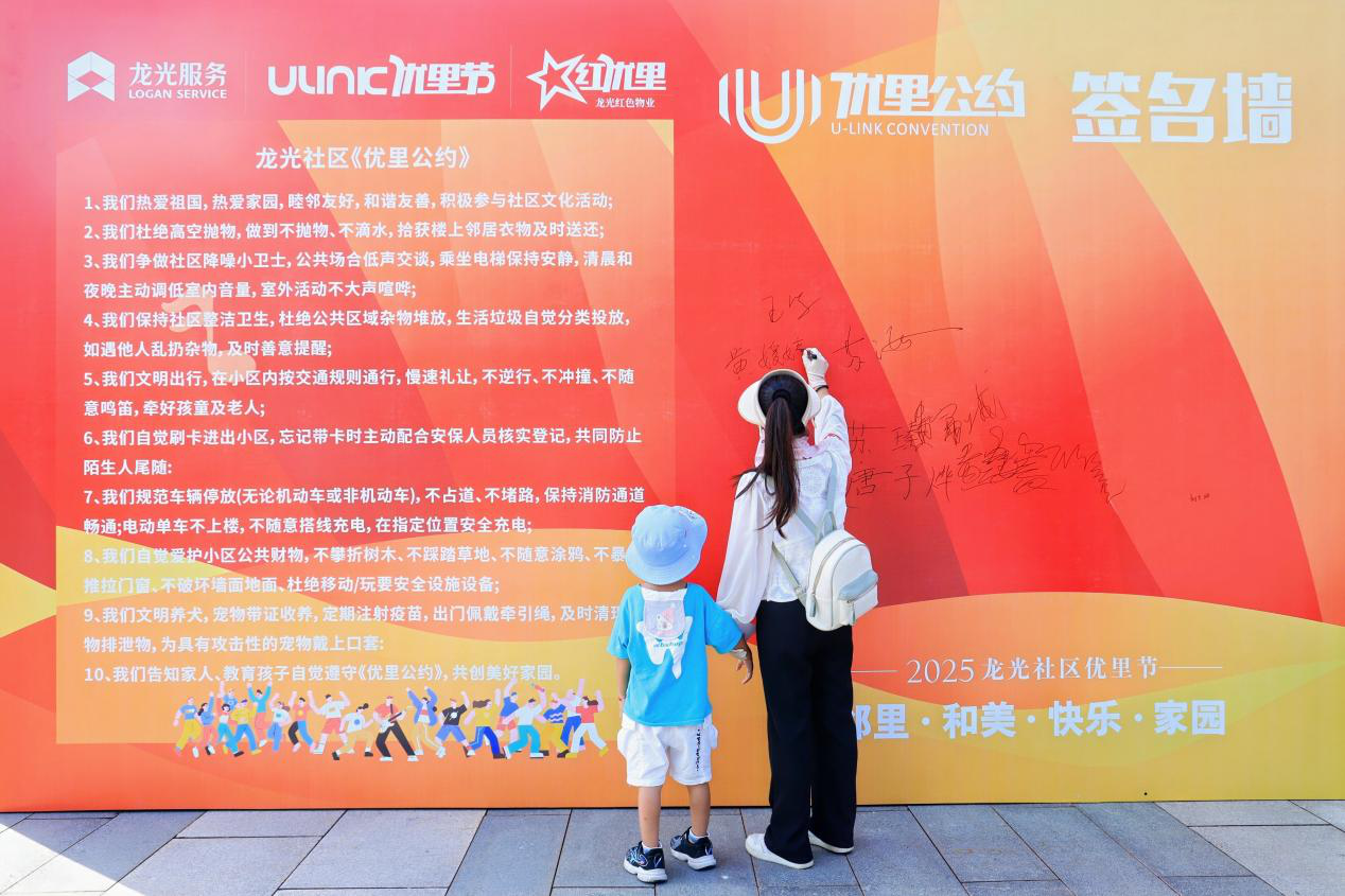 构建和谐社区,既需要规范的引导,也离不开居民的广泛参与。本届“优里节”期间,《优里公约》的推广与签署活动在各地社区引起热烈反响。这份公约涵盖文明居住、邻里互助、公共安全、宠物管理等十大方面,将和谐、友爱的理念融入日常生活。线上签署功能同步在“龙光荟”APP上线,动动手指即可成为“公约合伙人”。此外,萌宠节等传统活动也成为了践行公约的生动课堂,在党员志愿者的带领下,居民们共同倡导文明养宠,携手维护社区优美环境。