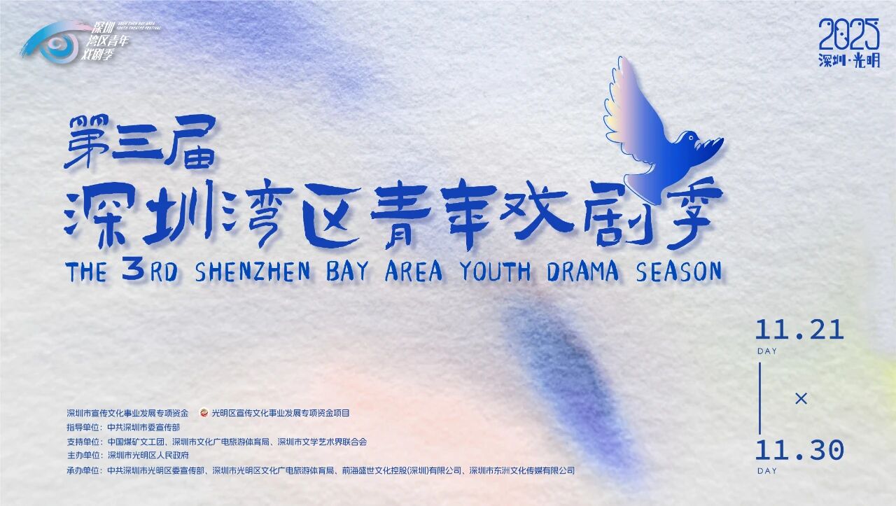 由中共深圳市委宣传部指导,中国煤矿文工团、深圳市文化广电旅游体育局、深圳市文学艺术界联合会共同支持,深圳市光明区人民政府主办,中共深圳市光明区委宣传部、深圳市光明区文化广电旅游体育局、前海盛世文化控股有限公司、深圳市东洲文化传媒有限公司联合承办的第三届深圳湾区青年戏剧季,即将在深圳光明重磅登场啦!