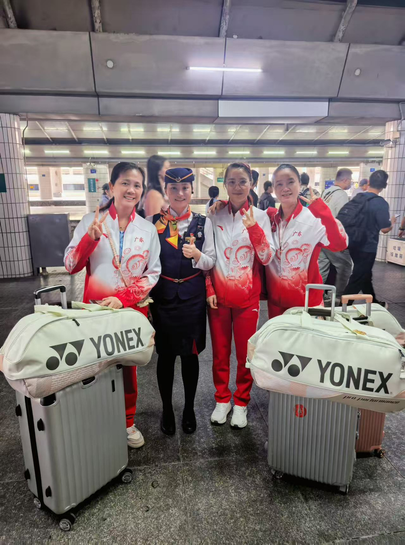 作为一名运动健将,吴越曾多次在各级别体育赛事中斩获佳绩。此次以火车头体协运动员的身份参与全运会,让她对服务保障工作有了更深刻的理解。10月27日,在她值乘的G6546次列车上,恰逢广东省羽毛球(群众组)代表队出征。她和车班同事精准提供了餐饮、购票、中转换乘等一条龙服务,获得了运动员们的一致好评。从服务的保障者到赛场的逐梦人,吴越的双重身份,生动诠释了广九客运段青年职工的专业、活力与担当。