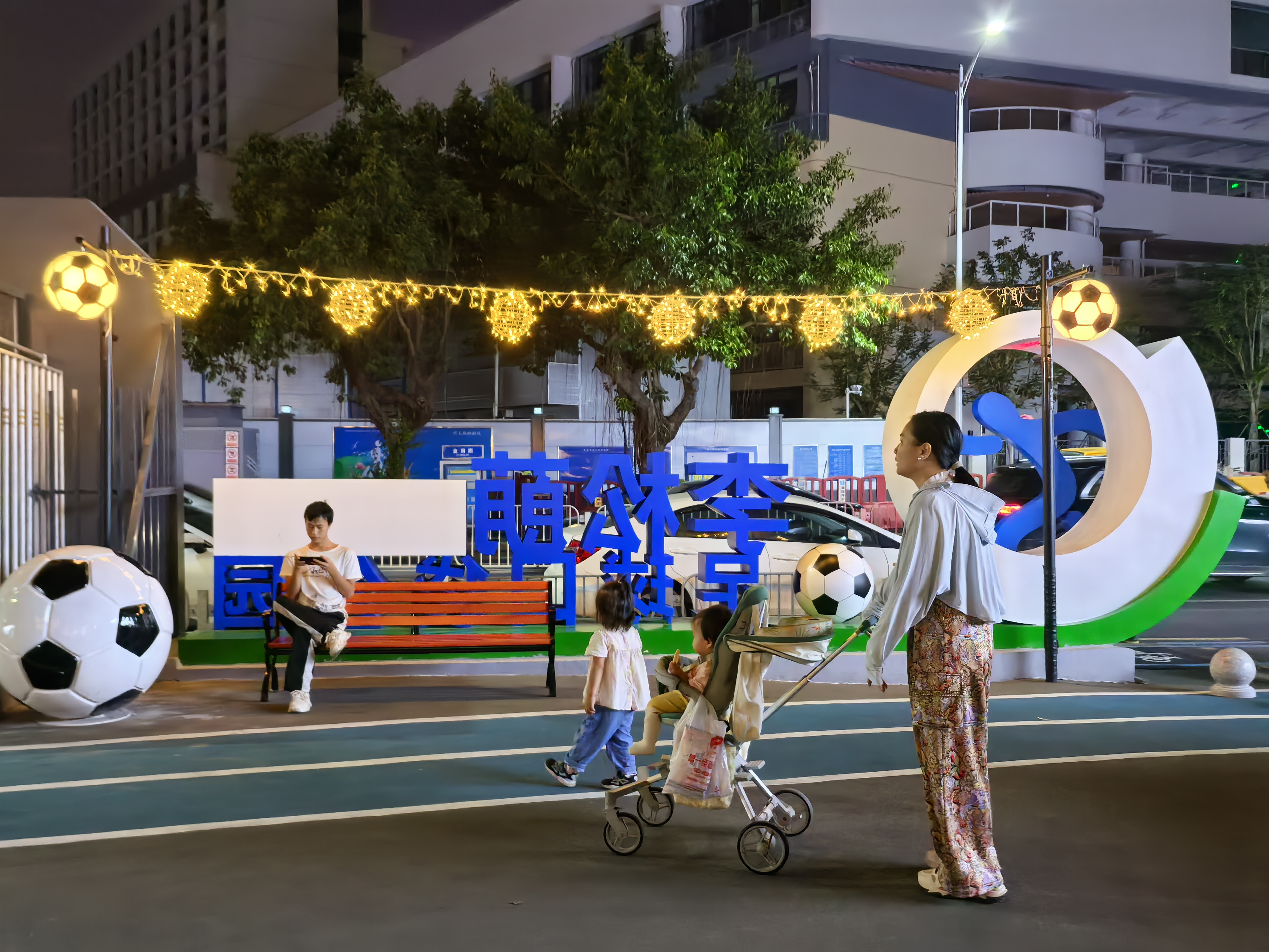 第十五届全运会足球赛事“落户”家门口,让这座600余年历史的老村迎来蝶变。社区沿街的围挡、箱体都印上了足球轮廓,蓢新路的灯带与发光字点亮夜空,既为观赛市民筑牢安全防线,也让这条老街成了“夜光打卡道”。“每盏灯笼都是我们亲手挂的,三角梅有买来的‘心意花’,也有移植的‘用心苗’。”社区工作人员说,这些充满巧思的布置,藏着居民对赛事的期待。