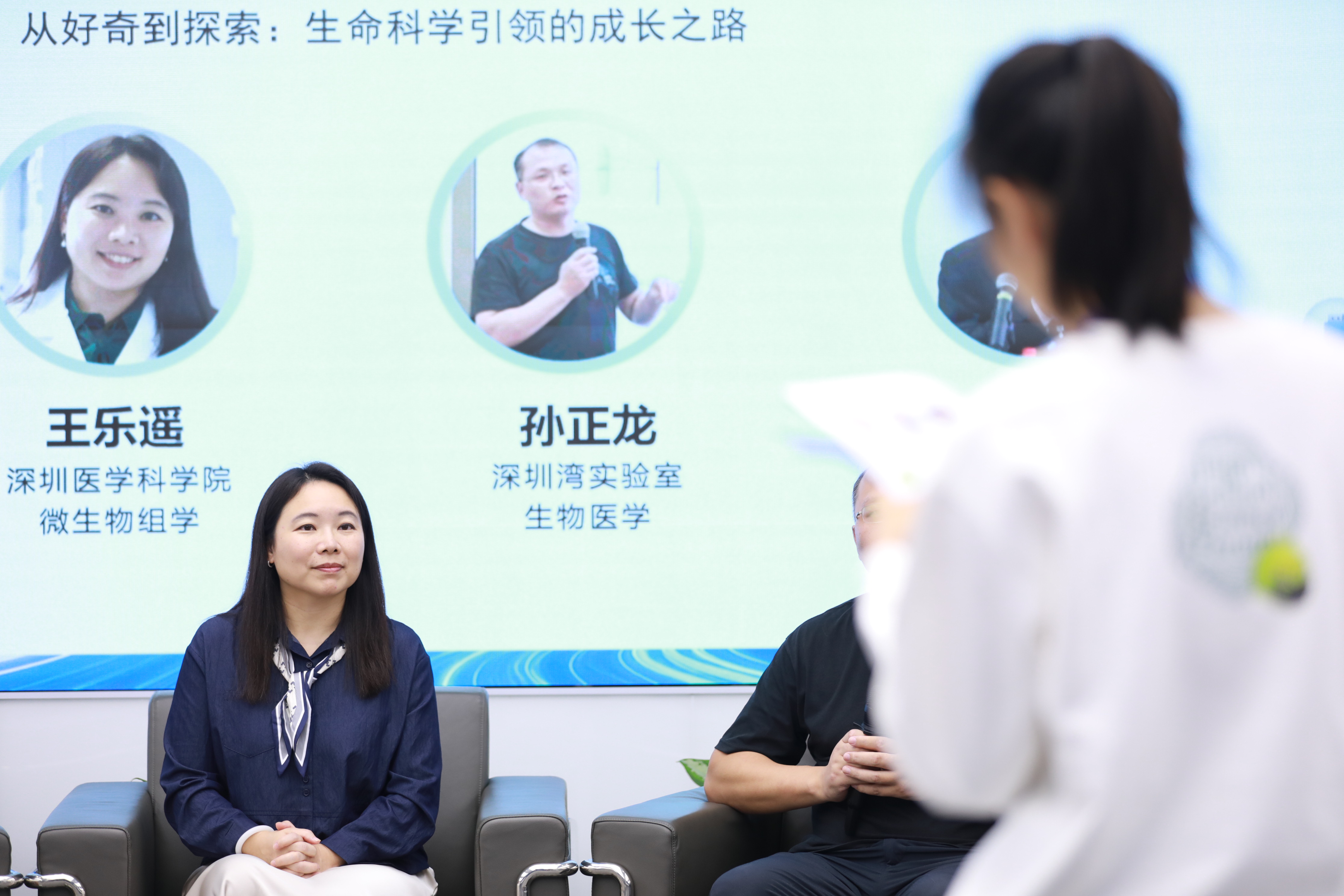 在“从好奇到探索:生命科学引领的成长之路”圆桌论坛上,特邀嘉宾王乐遥、柳峰、孙正龙、徐惠中四位科学家展开深度对谈。同学们踊跃提问,“膨胀显微镜如何保持生物样品原有结构?”“定向分化技术在疾病治疗中有何最新进展?”等专业问题接连抛出,思考深度令在场科学家赞叹不已:“这真的是高中生吗?”思想的碰撞让现场氛围持续升温。