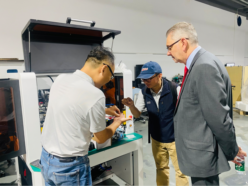 随后,代表团一行前往恒控科技,围绕工业自动化运动控制技术展开专业对话。该企业专注于工业自动化运动控制的研发与应用,以FPGA大规模可编程逻辑控制器件、ARM控制器、7寸可触摸彩色LCD及驱动电路、运动控制算法等为核心技术载体,通过多学科技术高度整合与高效软件算法,实现运动控制中加速度、速度规划及脉冲输出的精准调控。代表团聚焦自动化控制系统研究方向,详细询问设备生产流程与质量控制体系,深入探讨自动化技术在医疗、仓储装备研发中的应用潜力,为双方后续技术合作找准切入点。