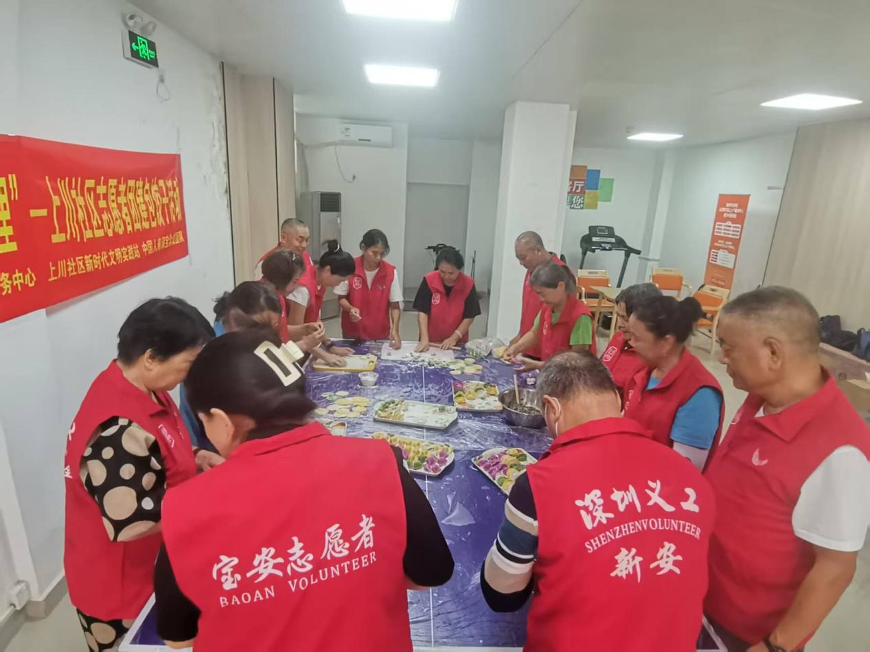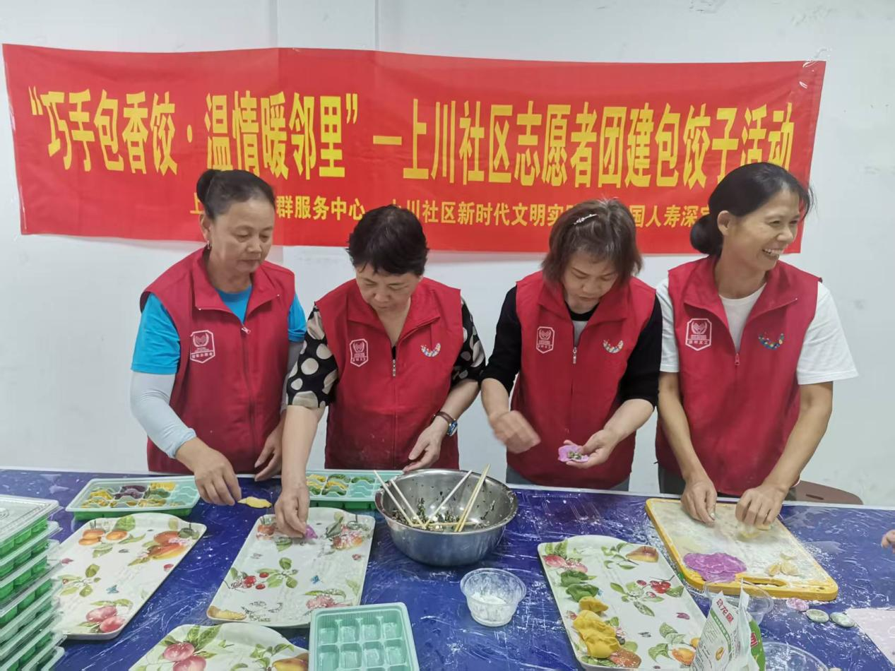 近日,上川社区党群服务中心联合爱心企业中国人寿深宝众成团队,在社区百姓客厅开展“巧手包香饺·温情暖邻里”志愿者团建包饺子活动。十余名社区志愿者齐聚一堂,共同参与这场充满烟火气与人情味的暖心活动。