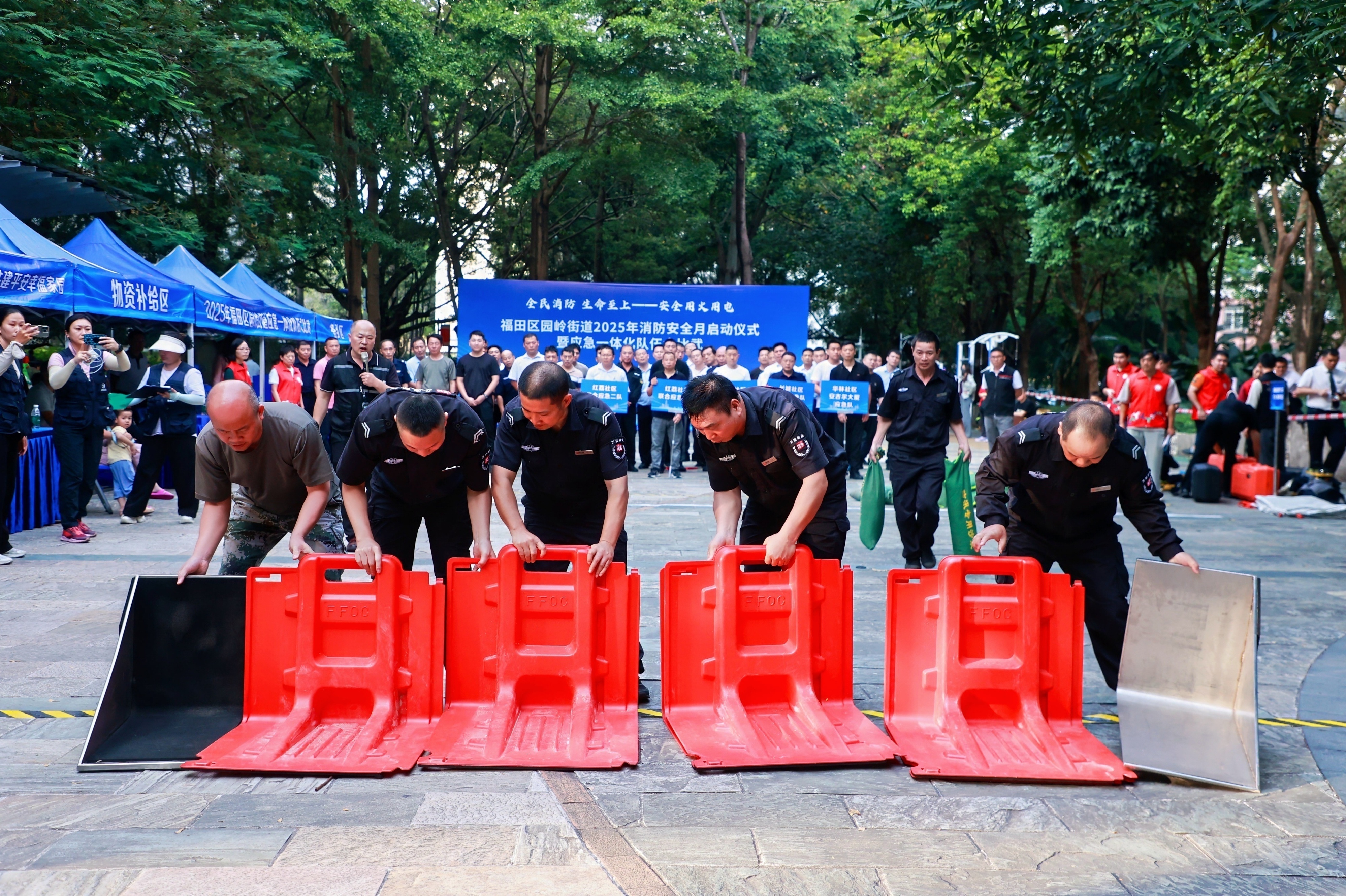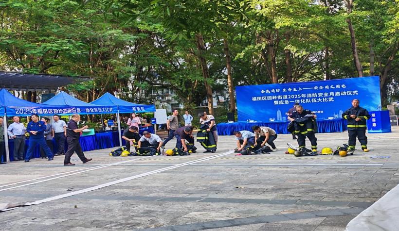 值此第34个全国消防日,11月10日,福田区园岭街道在白沙岭小公园启动消防安全宣传月,并同步举办应急一体化大比武。活动围绕“全民消防 生命至上”主题,以硬核比拼与安全宣传双管齐下,全面夯实社会面火灾防控根基。
