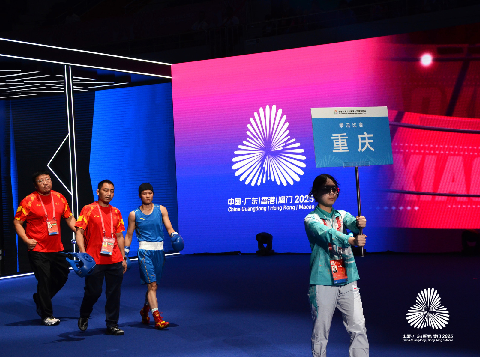 11月11日,十五运会拳击比赛再次在宝安体育馆决出两枚金牌。两名“00后”小将陕西队选手陈姿伊和四川队选手王小保奋勇夺魁,站上最高领奖台。