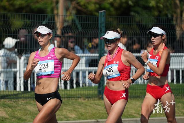 11月12日,十五运会竞走比赛在珠海金湾举行。在女子20公里的比赛中,巴黎奥运会冠军杨家玉一骑绝尘,以1小时27分34秒的成绩夺得冠军。广东选手、五次参加全运会的老将刘虹以1小时28分46秒排名第四,最终无缘领奖台。今年已经38岁的刘虹对于自己在场上坚持的过程是满意的,但结果却是遗憾的。