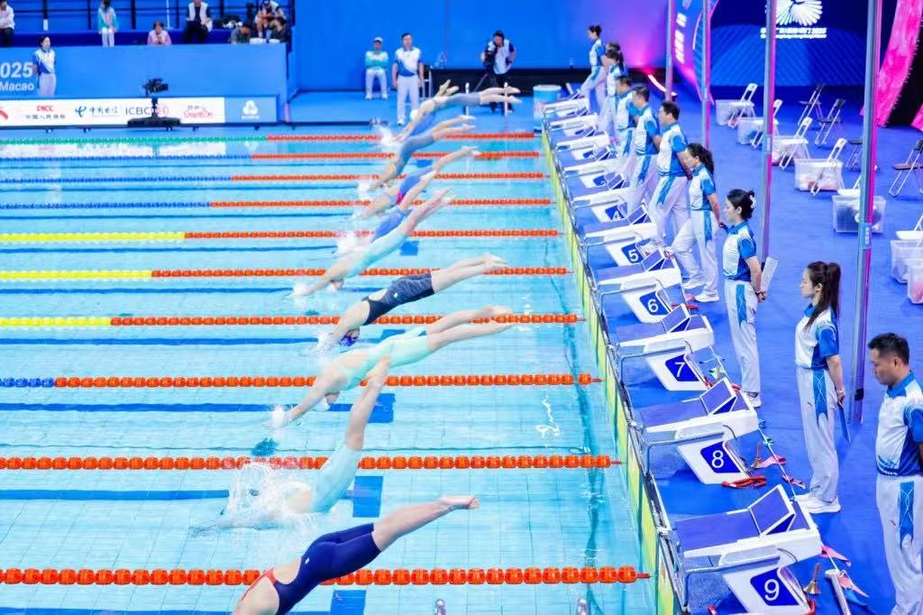 为衔接2028年洛杉矶奥运会赛程,本届全运会新增设了男子50米蝶泳项目。天津选手王长浩以23秒30的成绩夺得该项目首金,山东选手徐放和浙江选手沈加豪分别以23秒45和23秒58获得第二、三名。