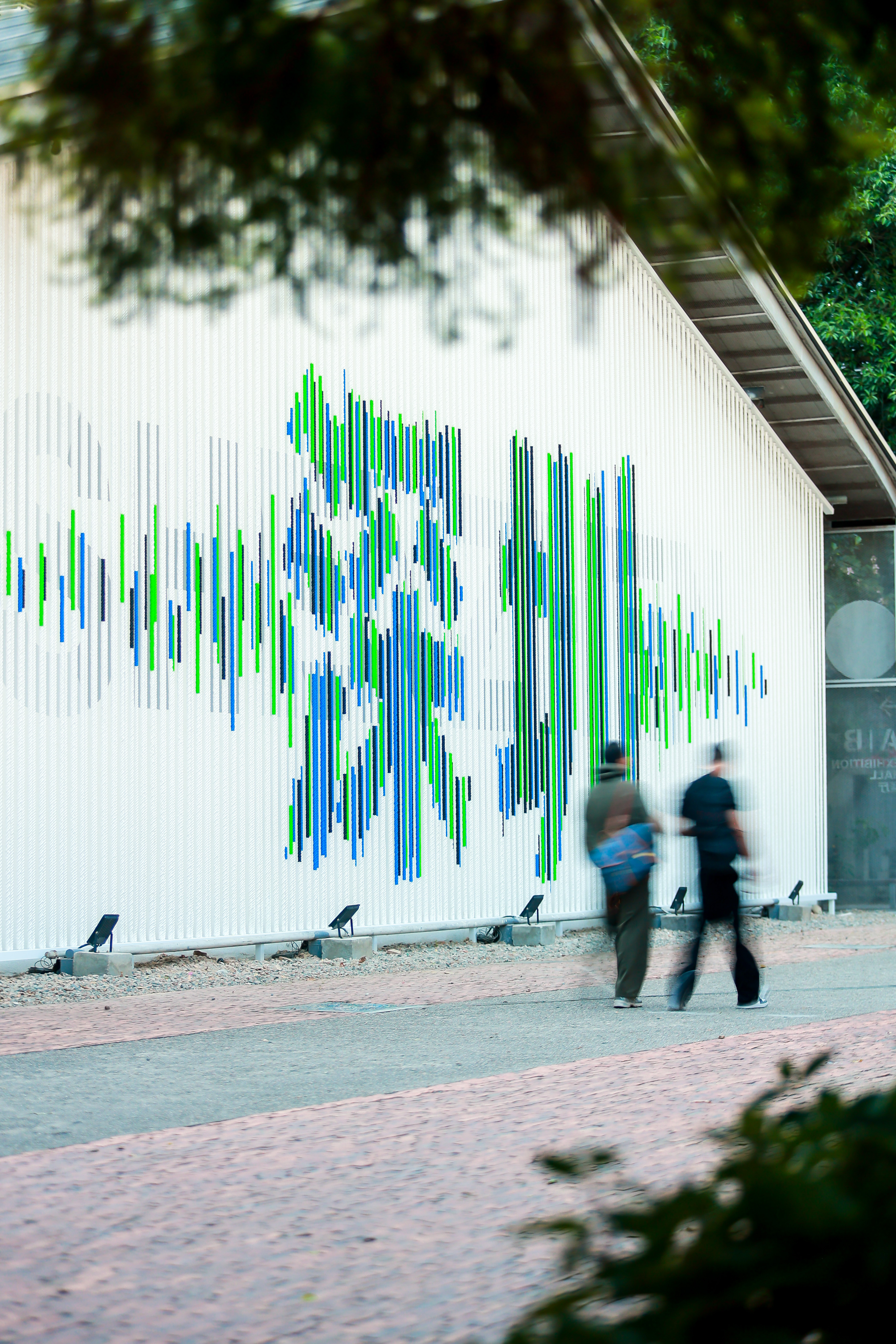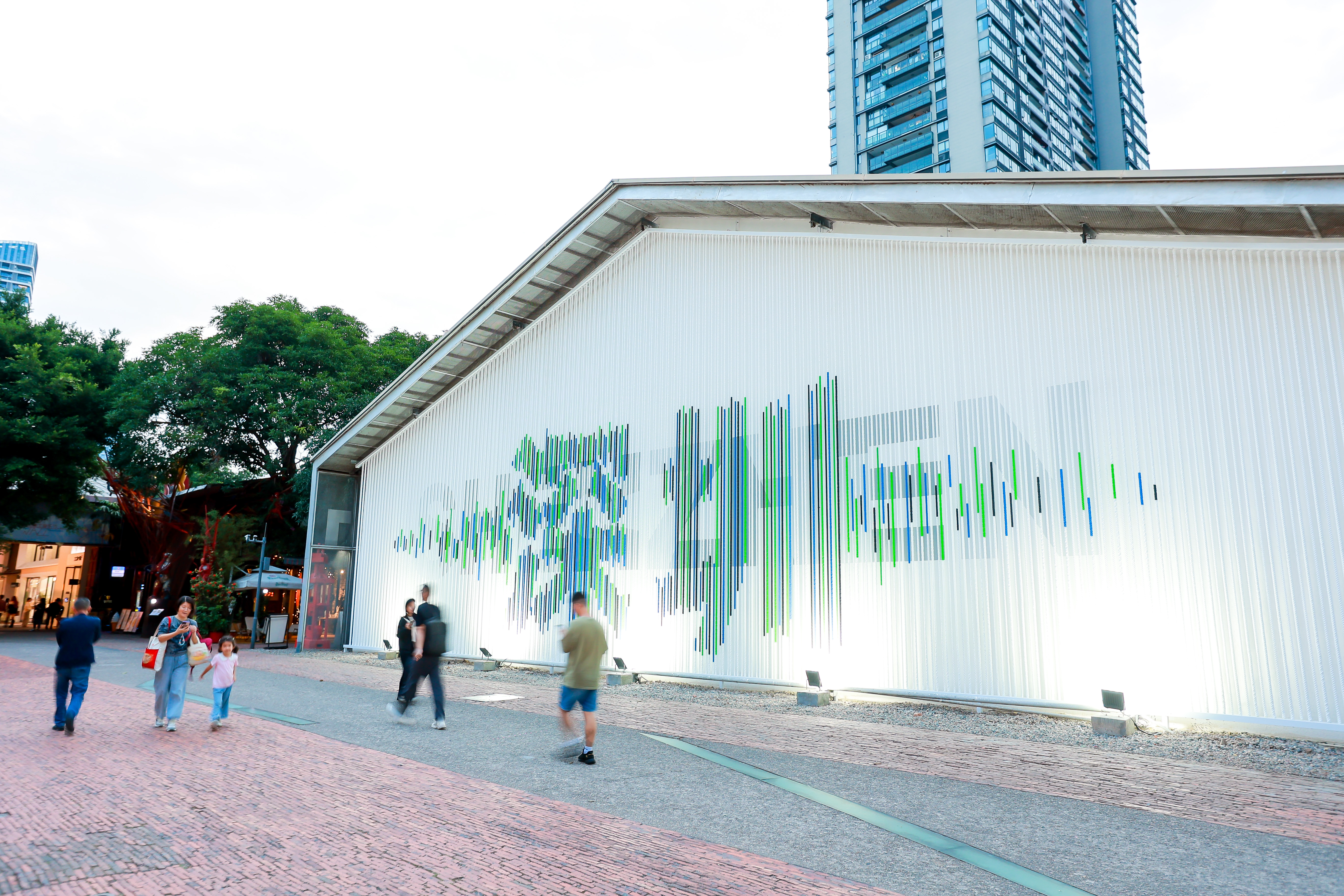 在线条与图形的复合交织中,这面墙不再局限于平面的表达,墙体上是巨大的“SHENZHEN”,而墙体之外叠加悬挂绳索,利用色彩线条错落呈现中文“深圳”,为城市增添更为独特的创意气息。当公众走过“深圳墙”,随着行进角度发生变化,“深圳墙”也会在视觉上有所变化,巨大的墙面无需“插电”,也能给人带来细微的动态交错观感,既能看见深圳的历史印记,也能感受到当代创意的力量。