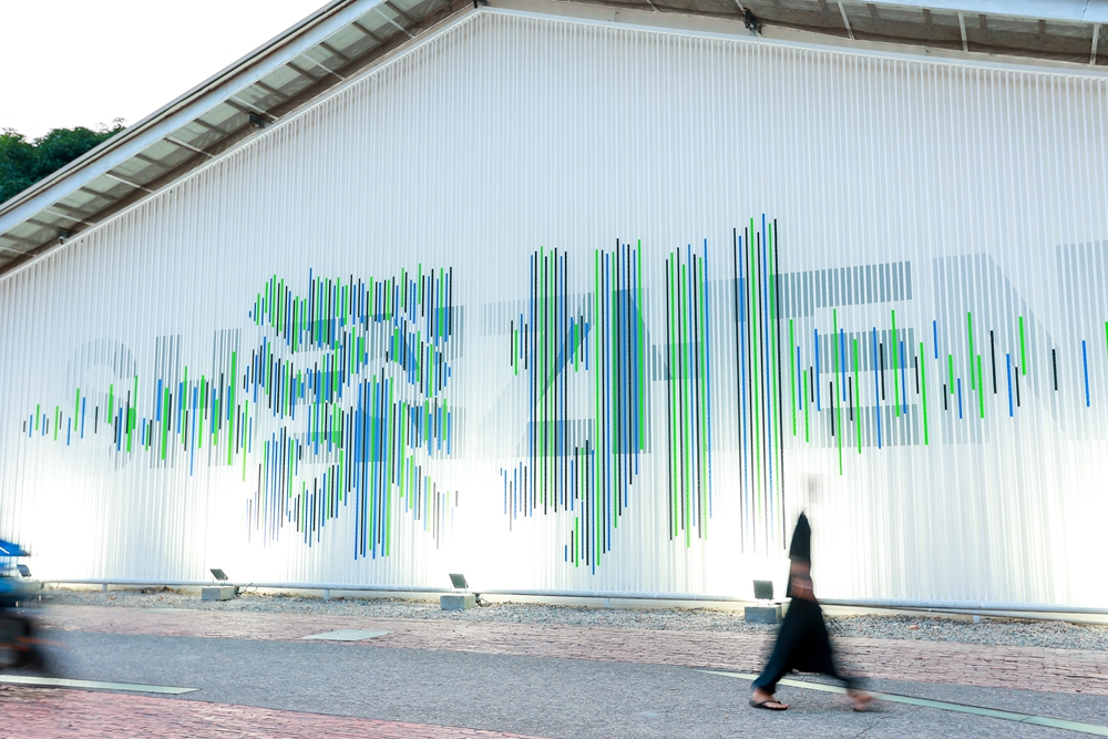 在线条与图形的复合交织中,这面墙不再局限于平面的表达,墙体上是巨大的“SHENZHEN”,而墙体之外叠加悬挂绳索,利用色彩线条错落呈现中文“深圳”,为城市增添更为独特的创意气息。当公众走过“深圳墙”,随着行进角度发生变化,“深圳墙”也会在视觉上有所变化,巨大的墙面无需“插电”,也能给人带来细微的动态交错观感,既能看见深圳的历史印记,也能感受到当代创意的力量。